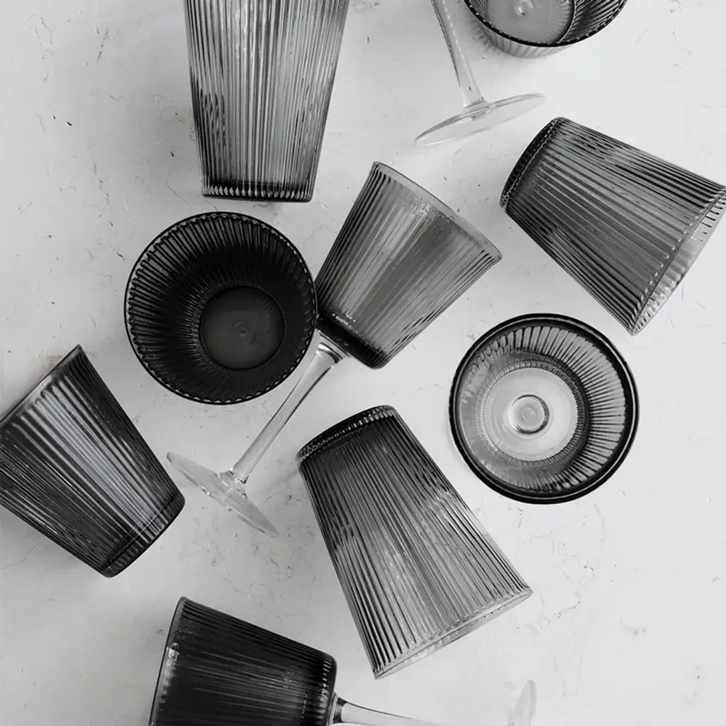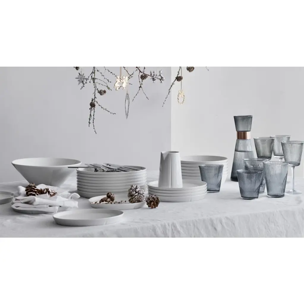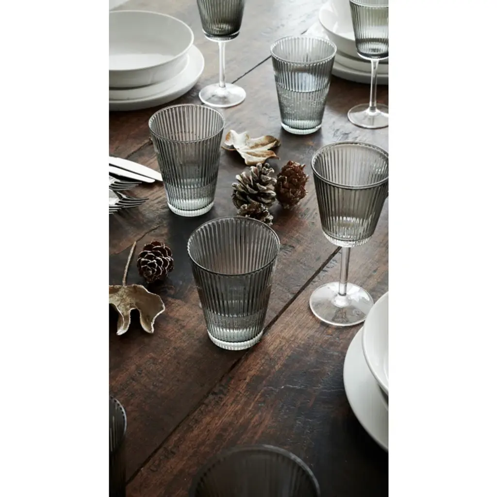Take the table setting up a notch by focusing on simple living and functional elegance in the classic silhouette. With the Grand Cru Nouveau wine glass in beautifully mouth-blown, high-quality glass in an elegant dark gray smoke color, you get a fresh and minimalist interpretation of a wine glass, which aesthetically and innovatively accentuates the Grand Cru design using current trends in style, structure and color. The Grand Cru Nouveau wine glass measures 18 cm in height and effortlessly balances aesthetics with function. The wine glass has quite simply been created by reducing the stylish Grand Cru Nouveau water glass slightly, and placing it on a stem. The multi-functional size of the wine glass pays tribute to the series' 'one size fits all' approach to modern glass design for a busy yet stylish lifestyle. Use it for both white and red wine – drinks, or a small spritz. Yes, any aperitif or non-alcoholic refreshment that is paired with the smoked glass, will enhance the optics of the innovative Grand Cru design and accentuate the series' distinctive everyday luxury-feel and functional elegance.