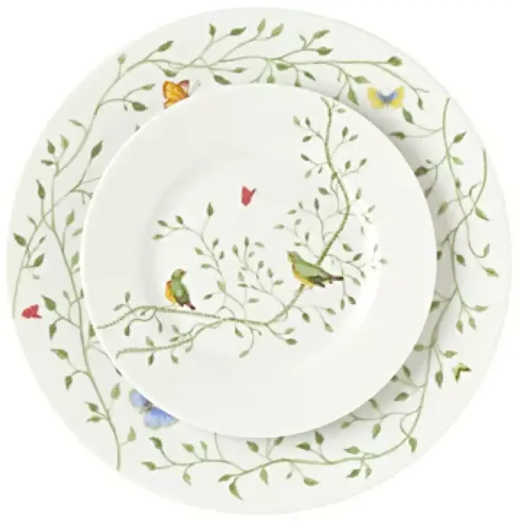 Birds and butterflies adorn Raynaud's Wing Song dinnerware, also known as Histoire Naturel. Designed by Pamela Baldwin, a portion of the proceeds goes to the Jane Goodall Institute to help preserve endangered species. Five-piece place setting includes dinner plate, salad plate, bread/butter plate, teacup, and saucer. Raynaud was established in 1849 and is the only survivor of 11 porcelain factories existing in Limoges, France. After years of research, Raynaud discovered techniques to create infinite combinations of fade-resistant decorations that is still used by porcelain makers. Boasting a client list of numerous presidents to Princess Diana, Raynaud has been the synonym of quality, known and recognized on every continent.
