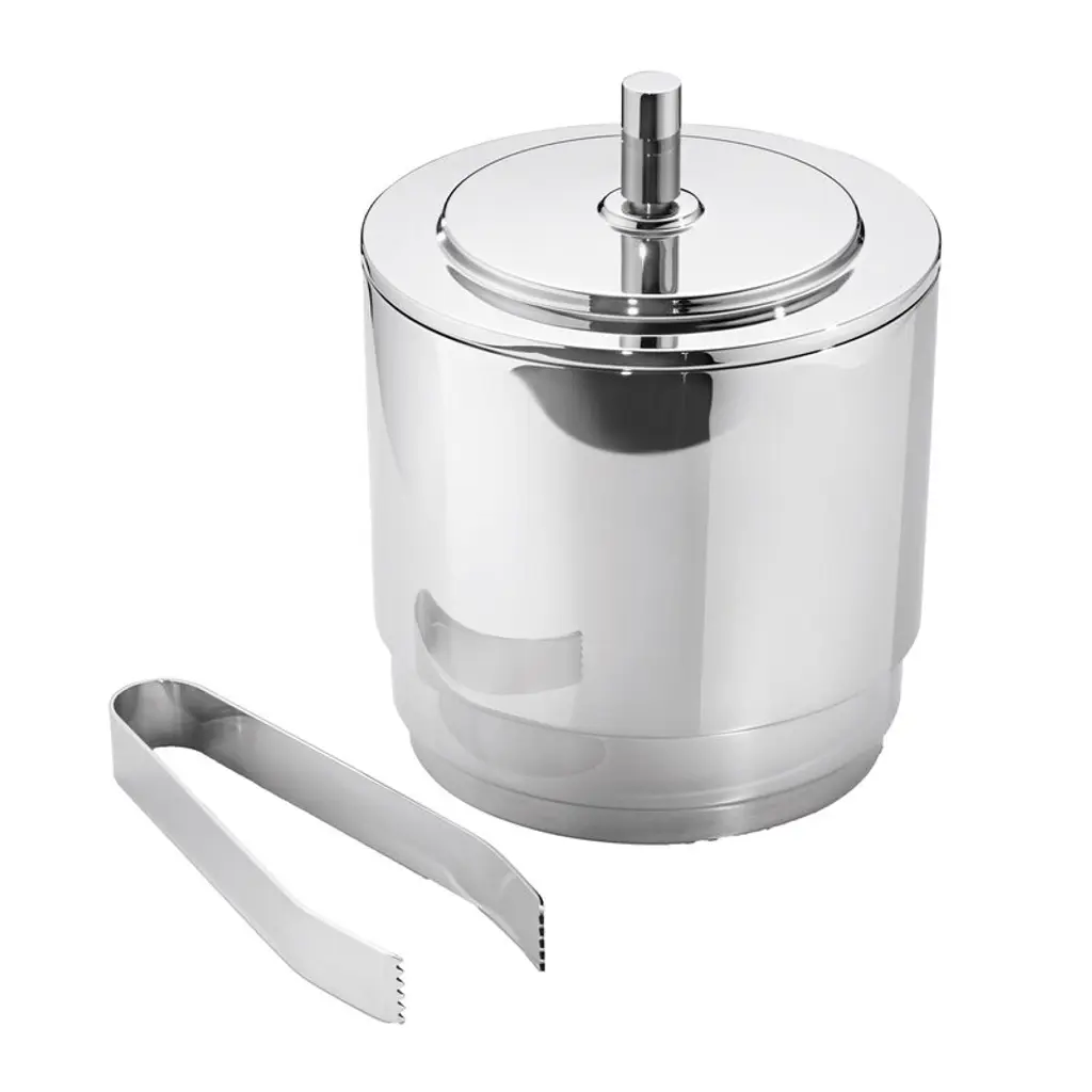 Winsford Shiny Nickel, Ice Bucket W/ Tongs, Round, Etched Metal