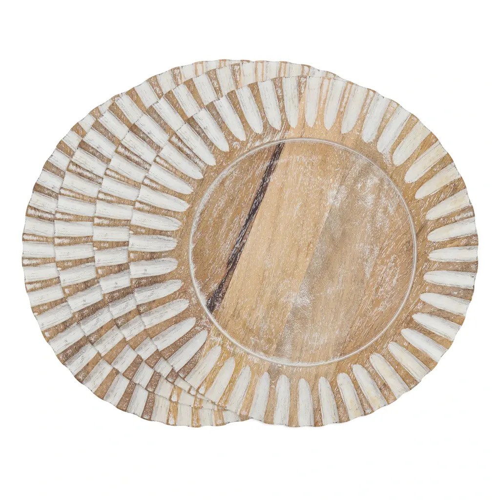 The Fluted Wood Charger Plates are the perfect finishing touch for your place settings. They give your dinnerware a stylish rustic accent by adding a bit of ribbed texture and distressed finish. The design and light, natural color helps elevate your favorite dinnerware.Features: