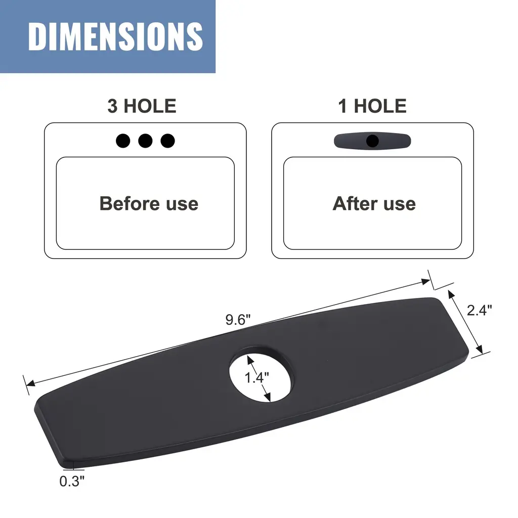 Wowow 304 Stainless Steel Faucet Plate For 1 To 3 Hole Sinks - Matte Black