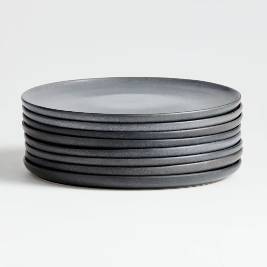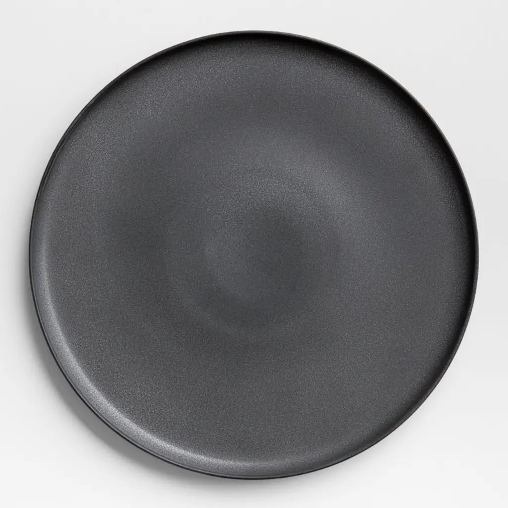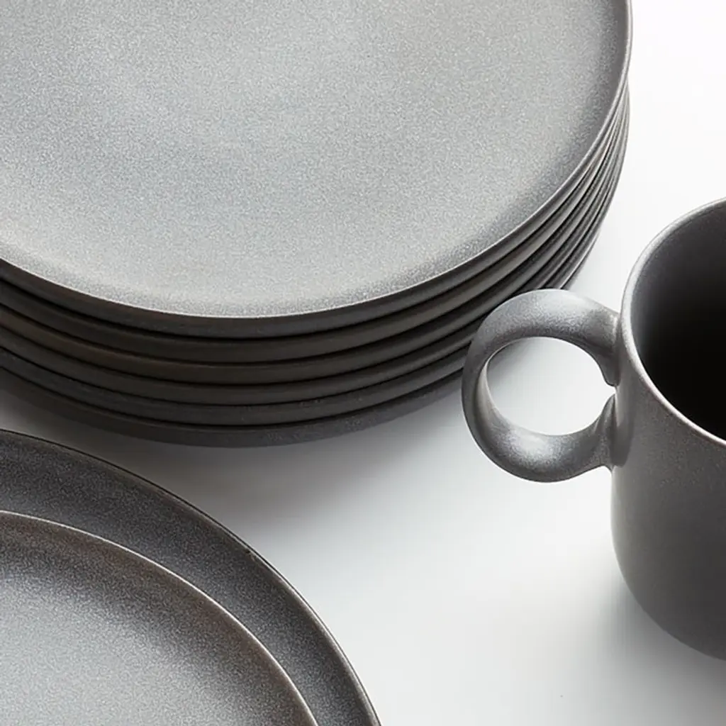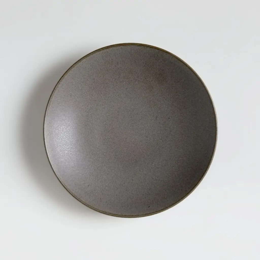 The subtle speckles of a reactive glaze animate the clean coupe shapes of our Wren grey dinner plate. Finished in tonal charcoal, the dish sets a modern table with its confident curves and organic beauty. For a coordinated look, add the matching bowl, mug and salad plate. Each stoneware piece will have its own distinctive look due to the reactive nature of the glaze.