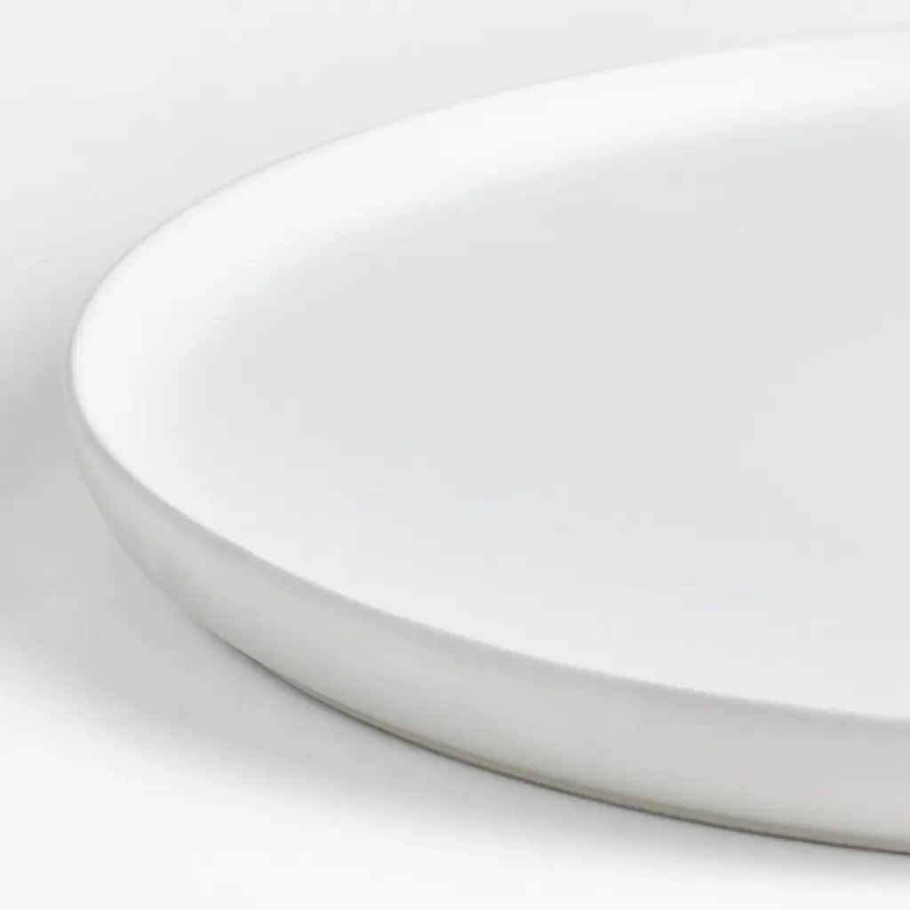 The perfectly creamy glaze emphasizes the clean coupe shapes of our Wren serving plate. Finished in matte white, the platter sets a modern table with its confident curves and organic appeal. For a beautifully cohesive look, pair with the matching dinnerware and serving bowl. Each stoneware piece will have its own distinctive look due to the reactive nature of the glaze.
