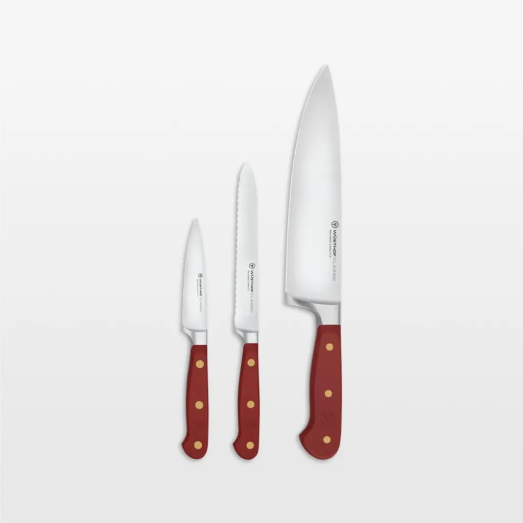 The perfect partner to expressive cuisine, these knives jazz up your kitchen with bold blue handles. The setpart of Wüsthof's Classic series known for its durability and high qualityincludes two foundational pieces for a well-rounded cutlery collection. Equipped with brass-riveted handles in a deep hue inspired by wild blueberries, the precision-forged knives feature hardened high-carbon steel blades with laser-controlled edges that are easy to sharpen. This versatile set pairs a 3.5-inch paring knife and 8-inch chef knife for a practical yet fabulous housewarming, graduation or engagement gift.Produced by skilled craftspeople in the knife-producing capital of the world, Wüsthof blades have been crafted in Solingen, Germany, for over 200 years.