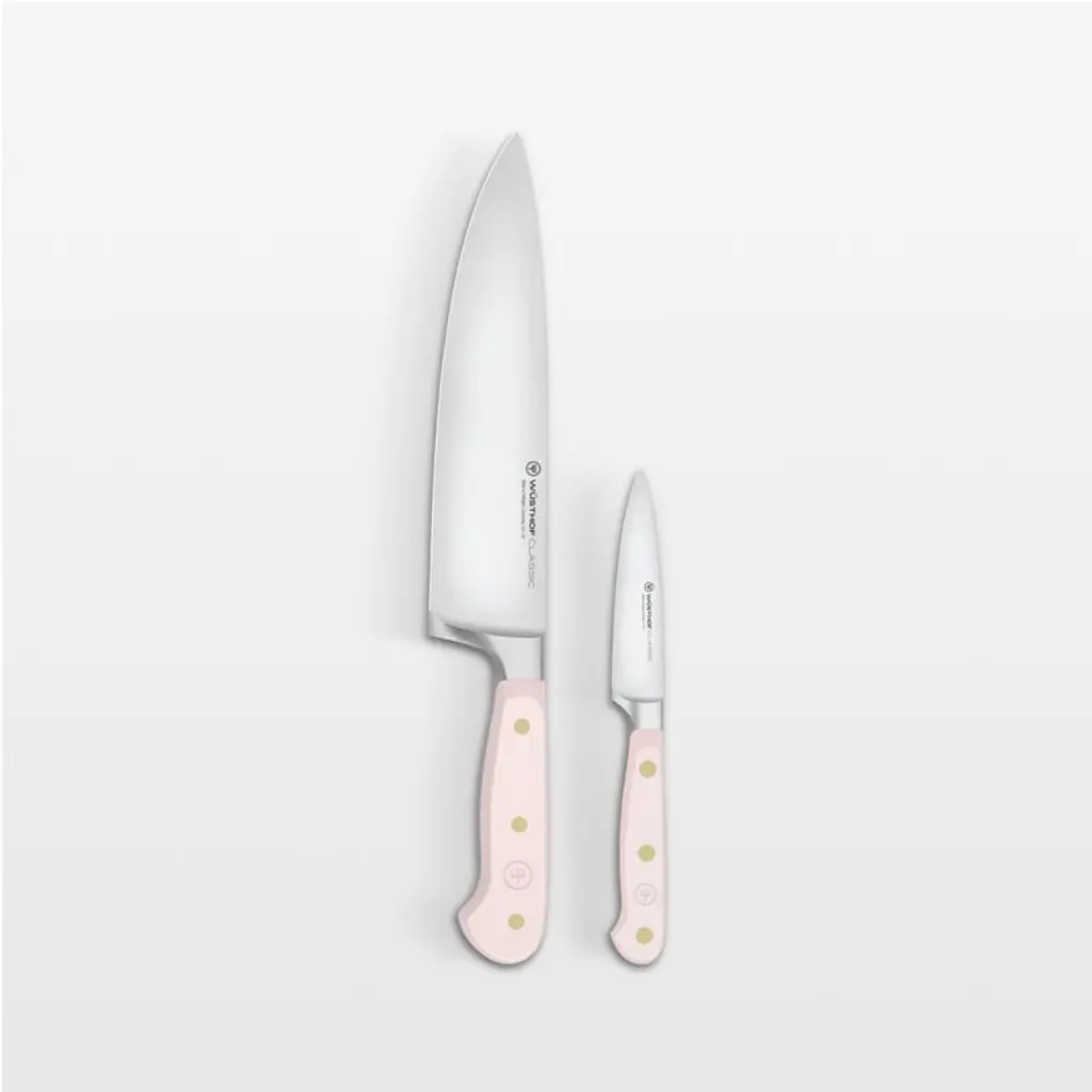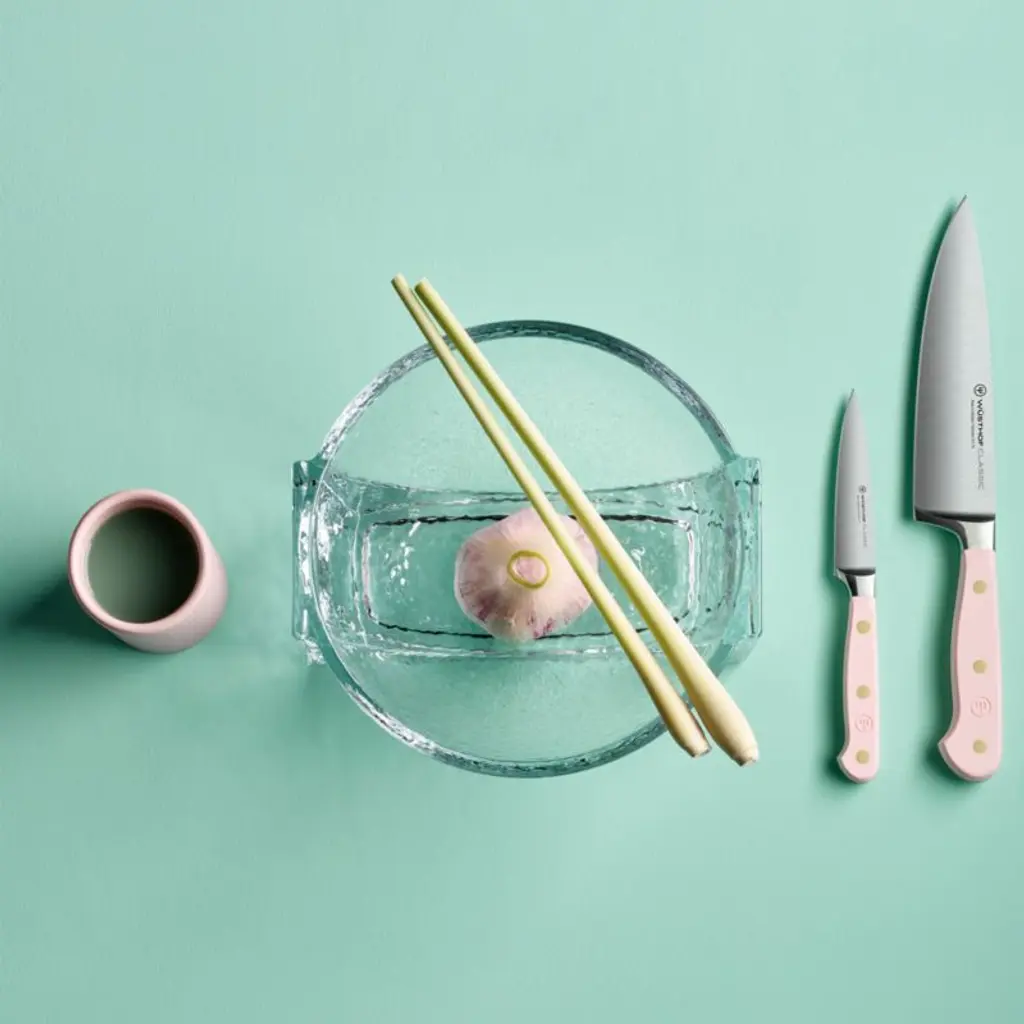 The perfect partner to expressive cuisine, this pink-handled paring knife jazzes up your kitchen with a pop of vibrant color. Part of Wusthof's Classic series known for its durability and high quality, the paring knife is an essential component of any cutlery collection. The knife excels at trimming, slicing and peeling thanks to a slim, tapered blade precision forged from a single piece of high-carbon stainless steel and finished with a long-lasting edge. A brass-riveted handle provides the full-tang knife with a comfortable handhold as well as a dash of color inspired by pink Himalayan salt.Produced by skilled craftspeople in the knife-producing capital of the world, Wüsthof blades have been crafted in Solingen, Germany, for over 200 years. Need help choosing? Here's your essential guide to choosing the best knifeView all Wüsthof Cutlery