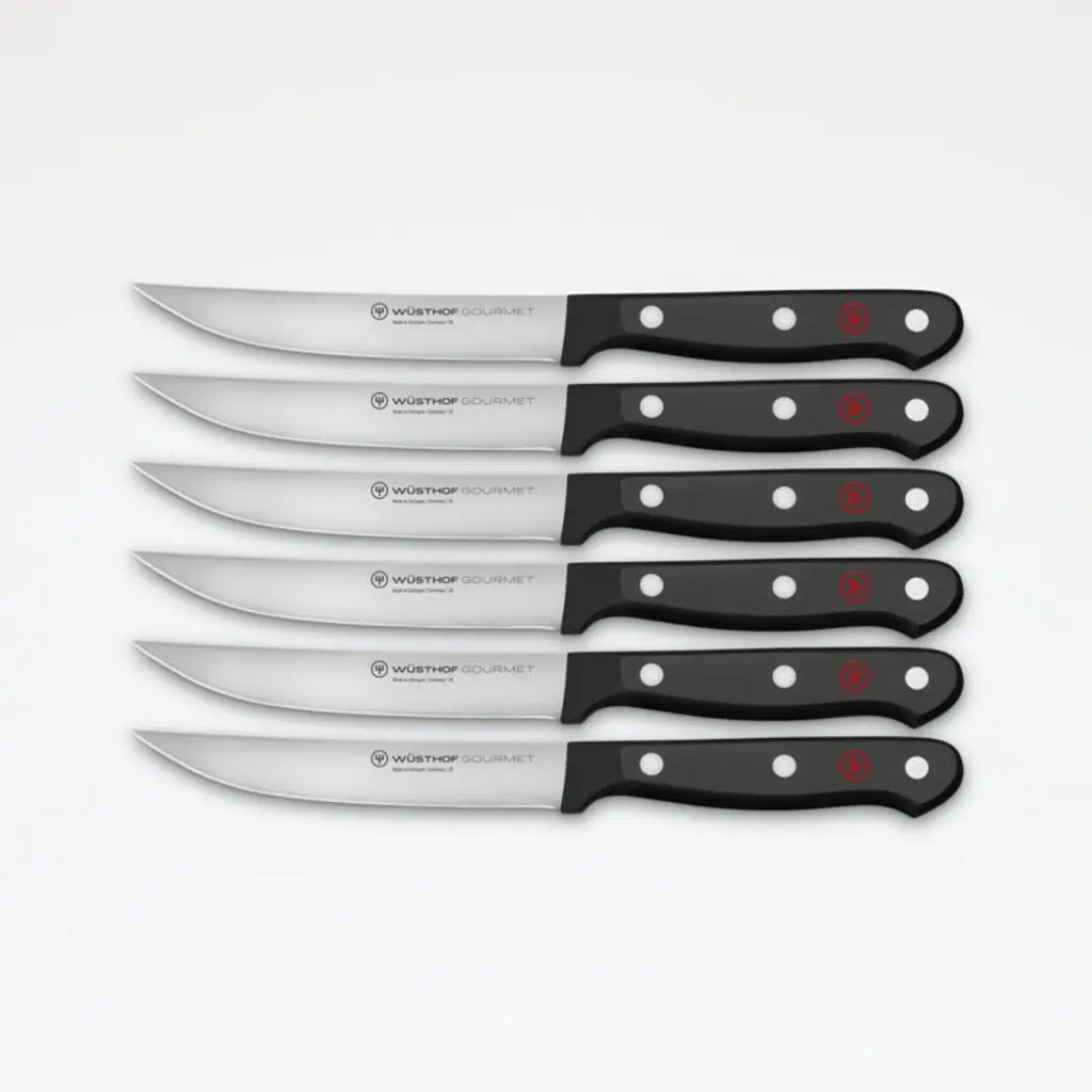 WÜSTHOF Classic offers the cutlery benchmark for tasks big and small. The traditional triple riveted design has been a favorite for generations. With perfect balance, this fully-forged line performs with precision and ease. This set offers everything you need, including a 3.5" Paring Knife, 5" Serrated Utility Knife, 6" Utility Knife, 6" Chef's Knife, 7" Santoku Knife, 9" Double Serrated Bread Knife, 8" Chef's Knife, and an 8-Slot Knife Block. The Purple Yam handles are a trendy shade sure perfect to get you creative in the kitchen.