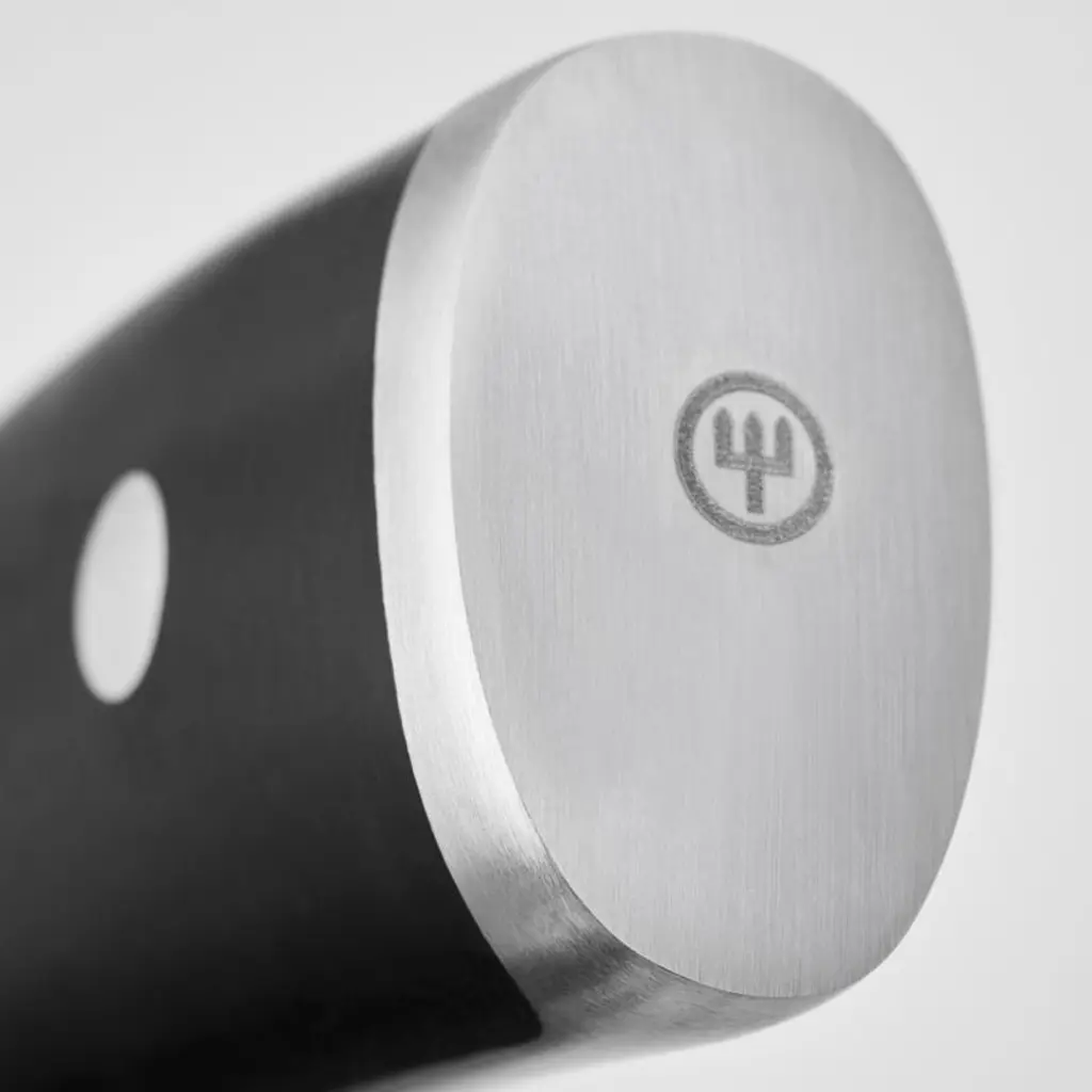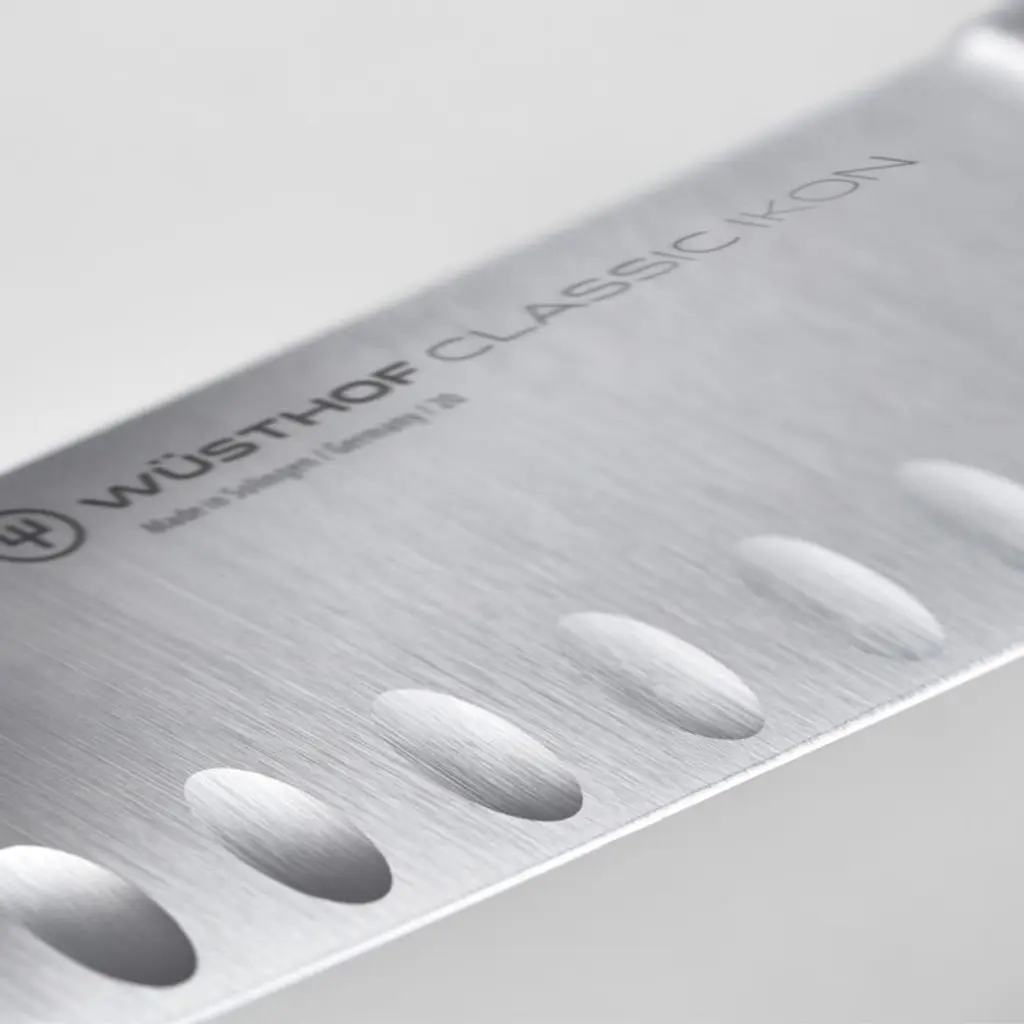 From chopping and dicing mountains of vegetables to slicing meats paper-thin, this versatile nakiri knife combines classic Japanese design with Wüsthof quality and performance. Designed with a thinner blade than the traditional cleaver, the knife has a long straight edge with evenly spaced indentations that reduce friction and drag when slicing. Part of the Classic Ikon series that builds on the Wüsthof fine cutlery tradition, the knife has a refined ergonomic handle and recessed bolster to allow full sharpening to the heel. The knife is hand forged of tempered high-carbon steel with a long-lasting, v-ground edge that's easy to sharpen. Perfectly balanced, triple-riveted handle with a full tang is stronger and more sanitary than wood.Produced by skilled craftspeople in the knife-producing capital of the world, Wüsthof cutlery has been crafted in Solingen, Germany, for over 200 years. Need help choosing? Here's your essential guide to choosing the best knifeView all Wusthof products