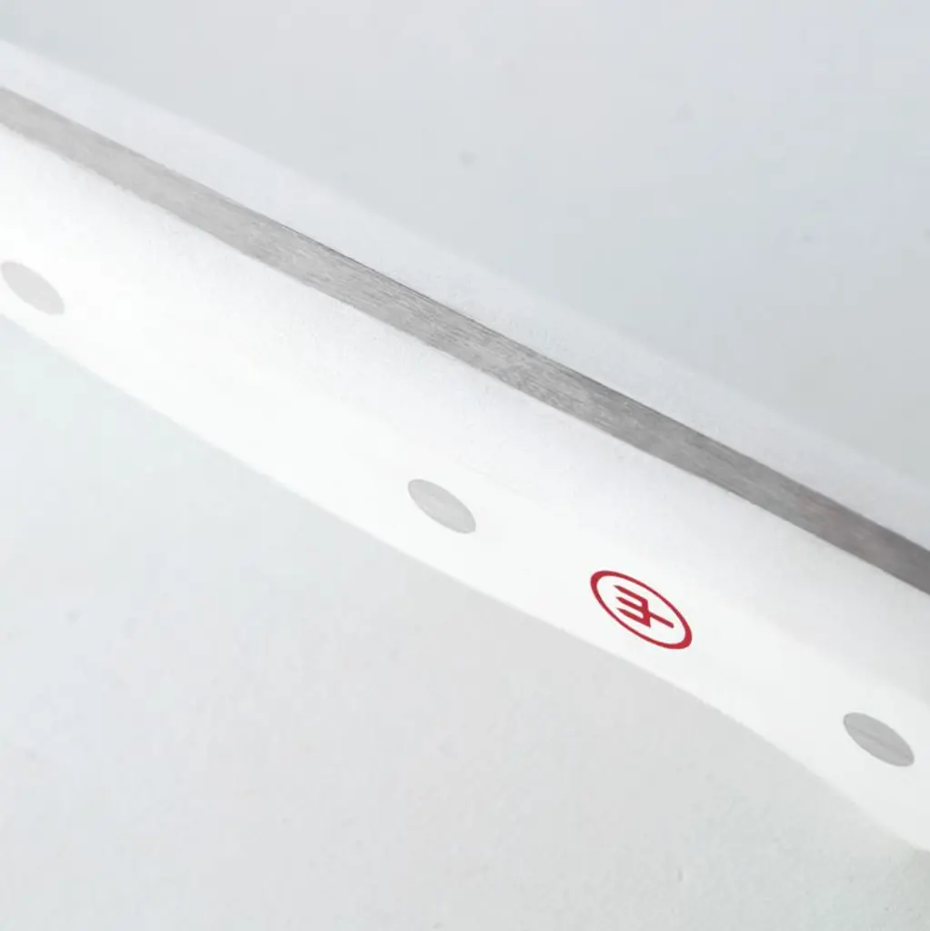 One of the most trusted names in cutlery, Wüsthof offers a nimble paring knife designed for trimming, peeling, mincing and boning. The short, pointed blade accesses hard-to-reach spots on meats and vegetables. Double-riveted to the high-carbon stainless steel blade, the double-riveted white handle is comfortable for everyday use.Produced by skilled craftspeople in the knife-producing capital of the world, Wüsthof blades have been crafted in Solingen, Germany, for over 200 years.