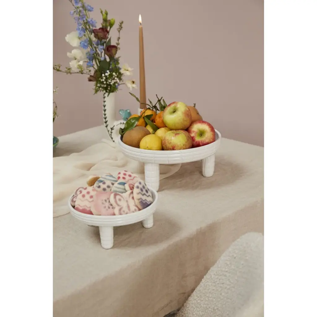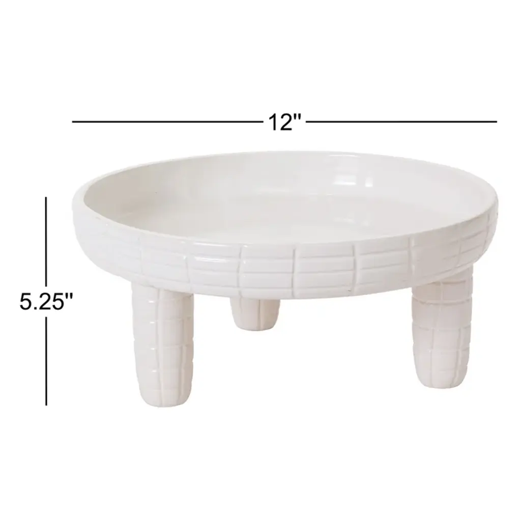 Serve spring cupcakes, a baby shower cake, or Easter-themed treats with the versatile ceramic Wyn cake stand. Featuring a hand-carved, dimensional grid design, this understated, food-safe, glossy white stand heights for creating a coordinated centerpiece. Pair the two together or use them as a stand-alone riser for retail merchandising, elevating spring figurines or florals, or holding plants.