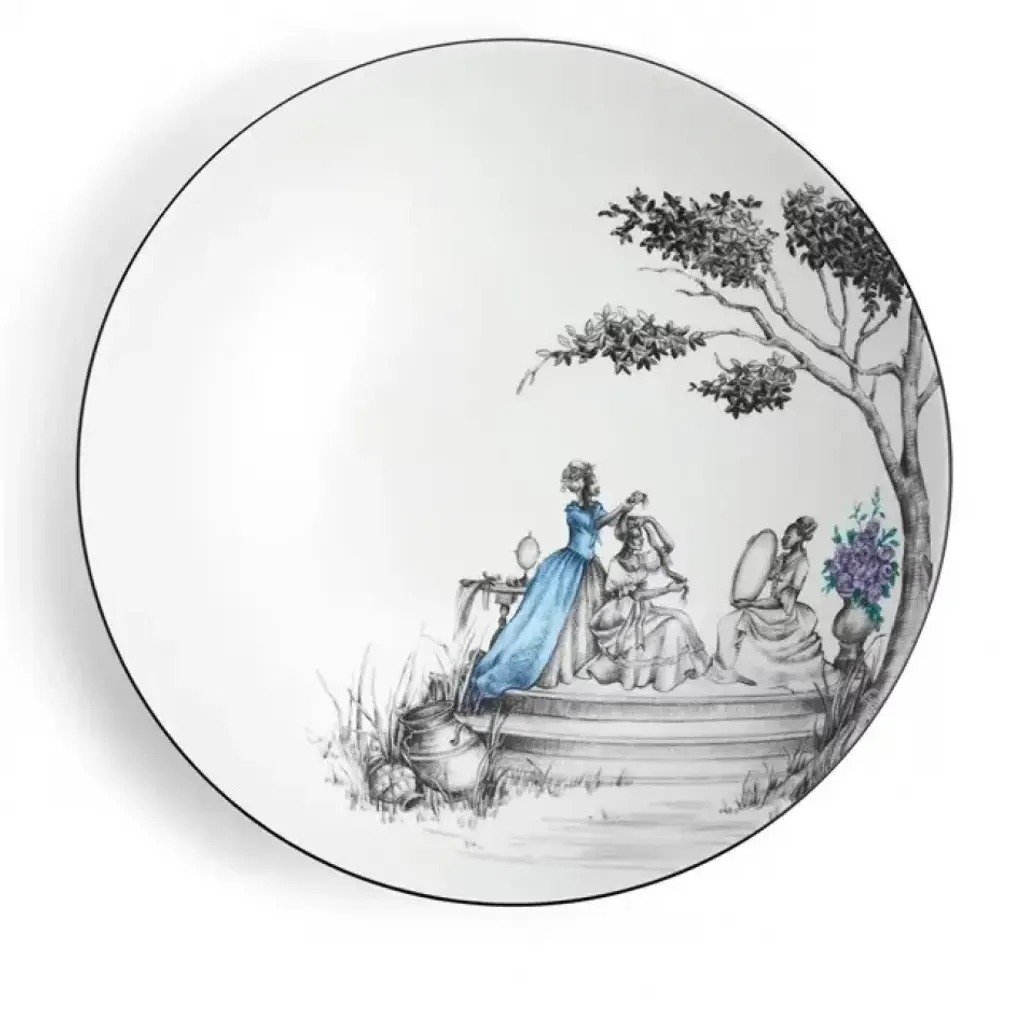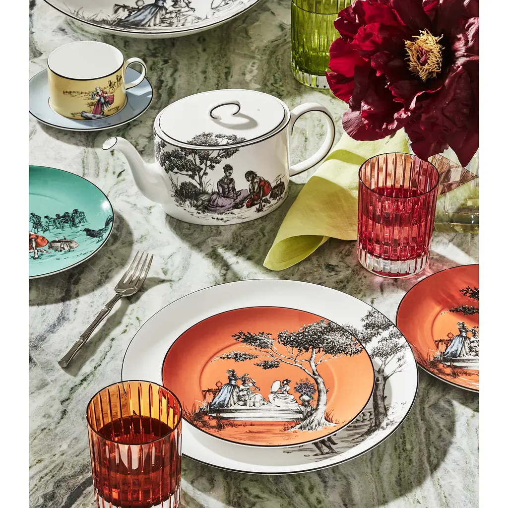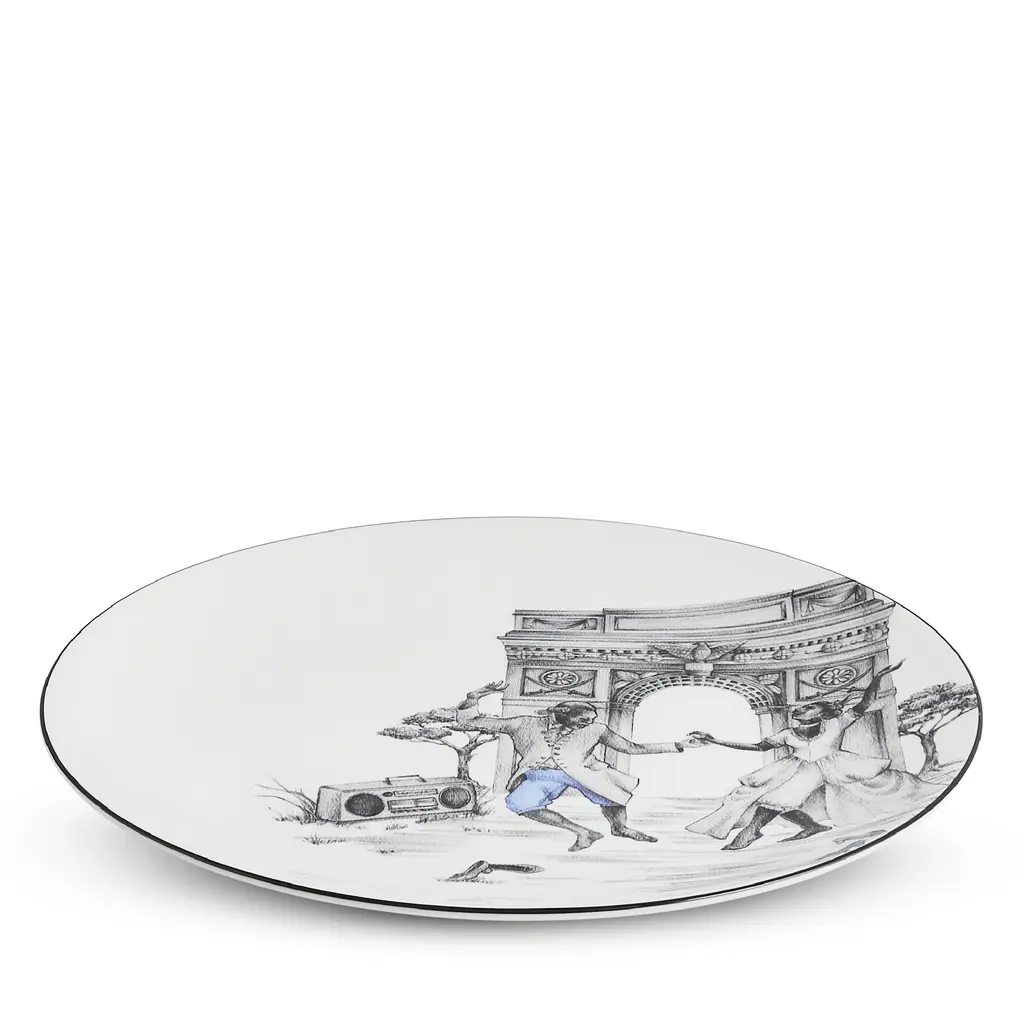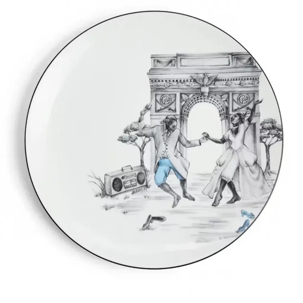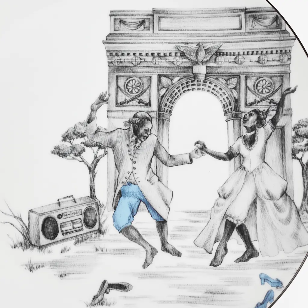 Display a beautiful tablescape with the whimsy scenes depicted on this collection created in collaboration between Sheila Bridges and Wedgwood. This collection features interior designer Sheila Bridges' much-admired design, Harlem Toile de Jouy. The design draws inspiration from traditional French toile, reimagined to celebrate a complex history and rich culture, while exploring stereotypes and allowing expression of politics and art. Like Sheila, Josiah Wedgwood voiced his political stance through creativity and craft. His Slave Medallion, "Am I Not a Man and a Brother", was sent to Benjamin Franklin to raise awareness of the anti-slavery movement. Sheila was first introduced to Wedgwood by her mother, who gave her a black and white medallion which she now wears as a necklace.This collaboration sees Sheila's popular design meet Wedgwood's fine bone china, for a collection that celebrates art as a tool for storytelling and change.