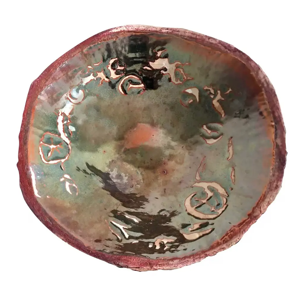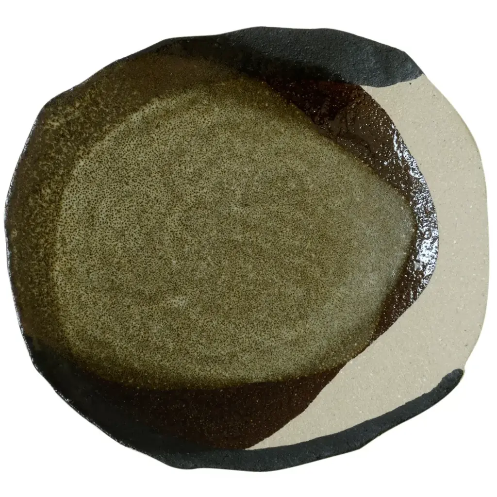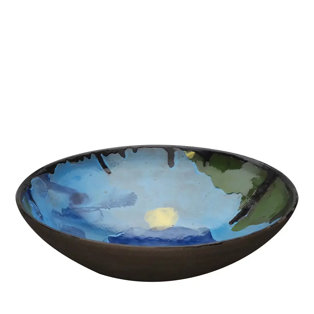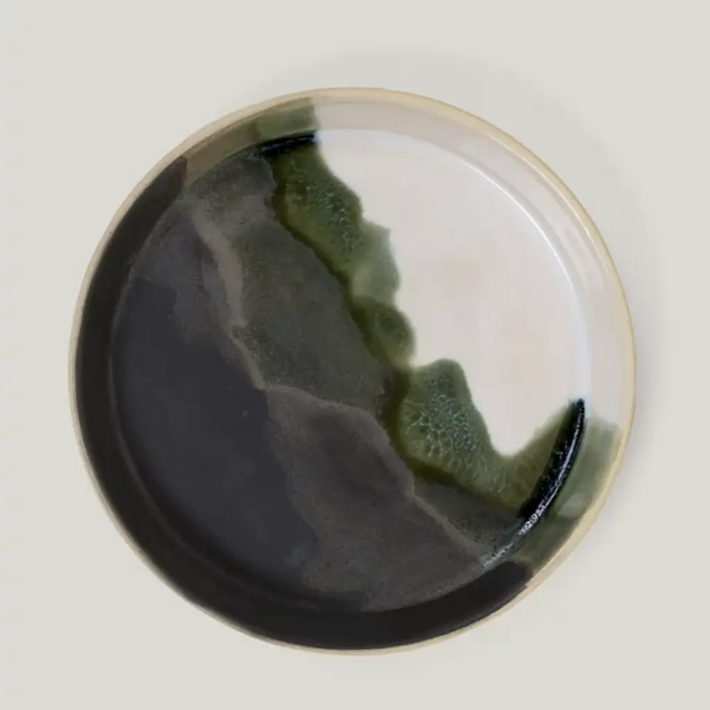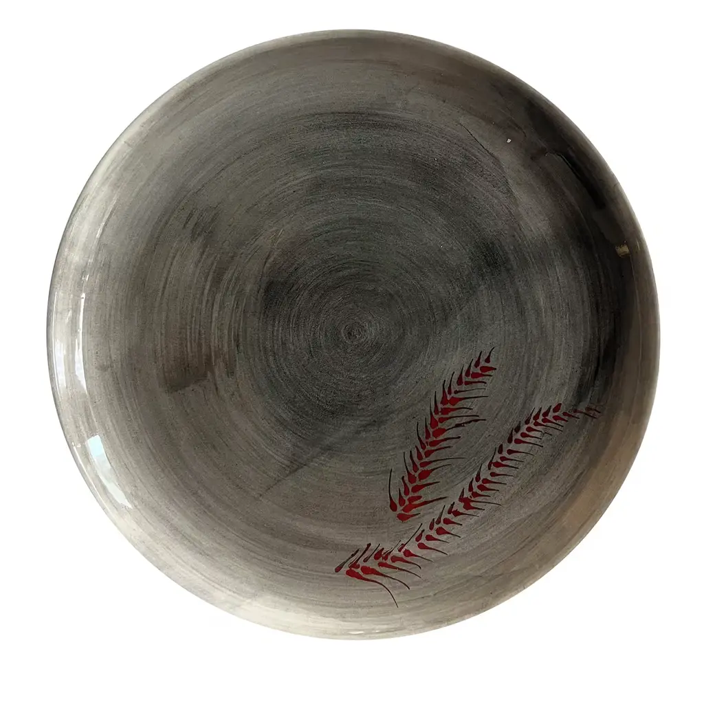 Dappled black is in this exquisite ceramic dinner plate the backdrop for a striking yet delicate decoration of spike-like elements hand-painted with a bright-red enamel. Decorated using non-toxic oxides, the plate was designed as a festive solution reinterpreted in an exclusive contemporary key that will surely not go unnoticed. Different versions are in the Artemest catalog.