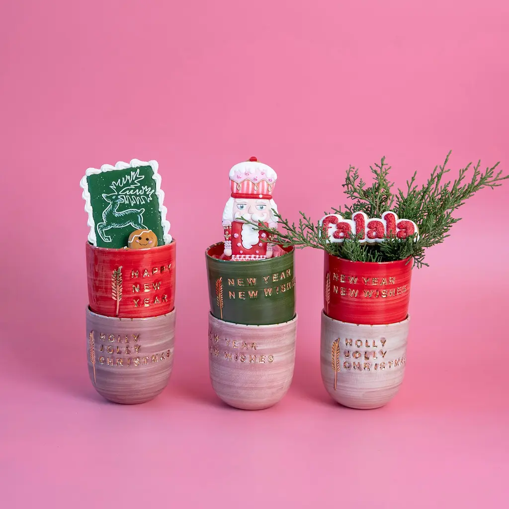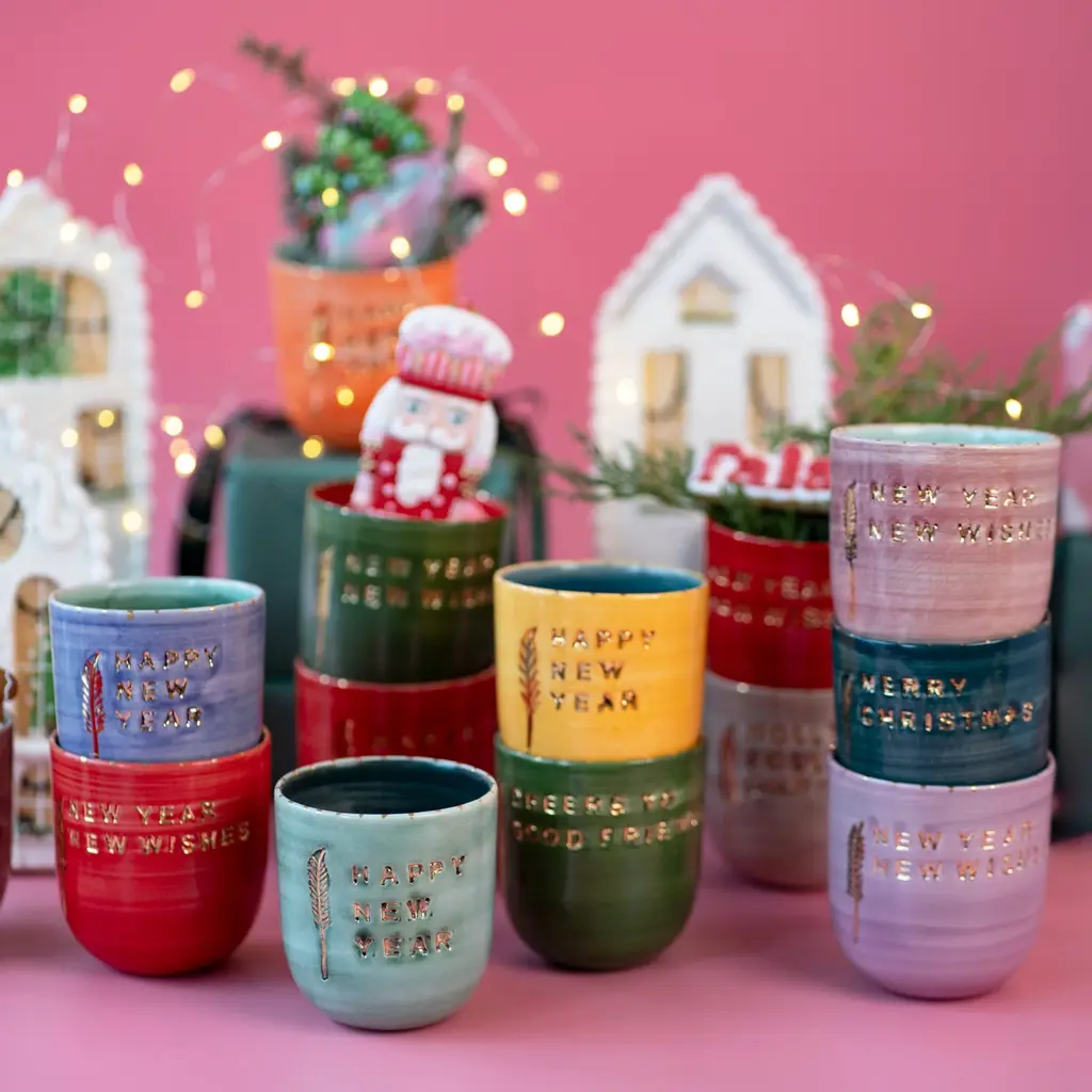 This collection brings festive moments and joyful vibes to your everyday. Each mug is beautifully decorated with real gold accents and features inspiring messages to brighten your new year. Embrace the holiday spirit and enjoy the charm of our Mood Mugs, designed to make every sip a celebration of happiness and cheer.