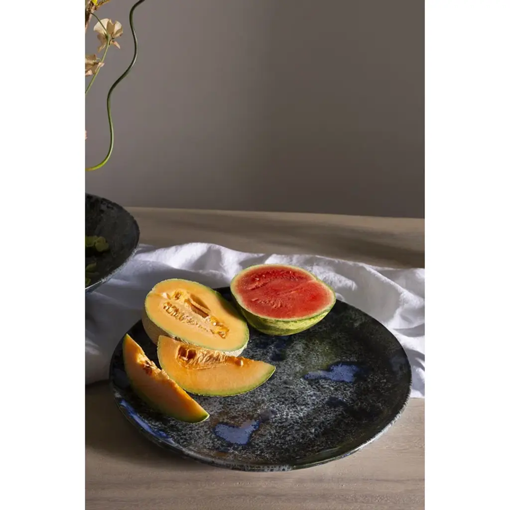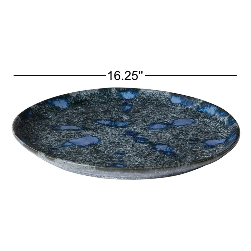 The Annalaura platter is crafted from ceramic, made food-safe. Bring an artisan look to your table with the gorgeous stoneware-crafted in a beautiful blue reactive glaze finish.
