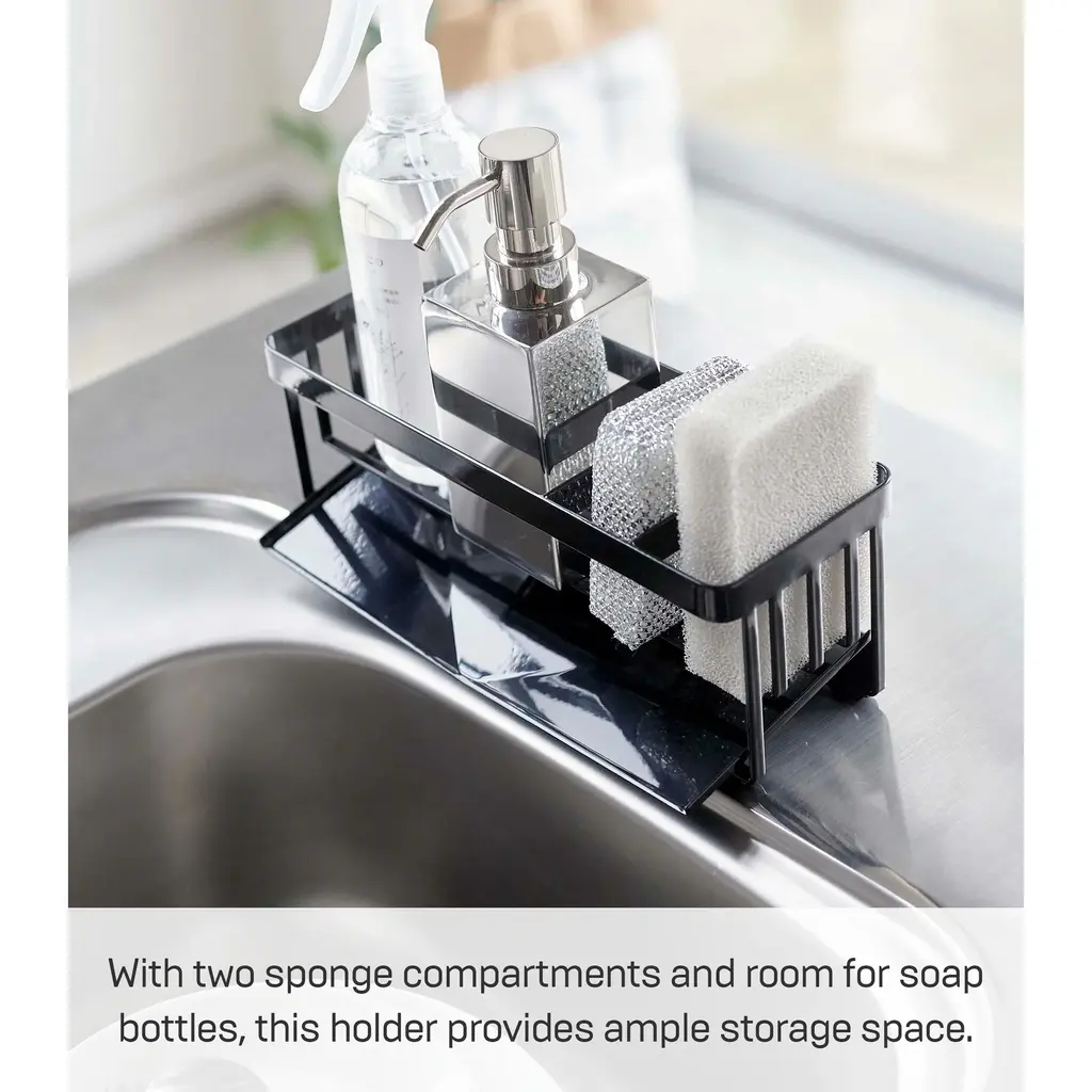 Yamazaki Home Sponge And Bottle Holder, Steel - L 3.94 X W 9.84 X H 3.74 Inches - Black