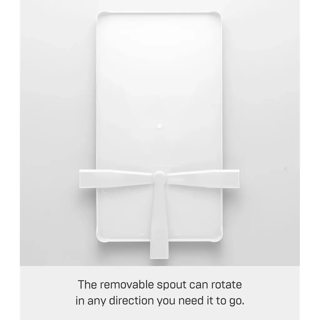 About This Product This simple drainer rack will add some style to your dishes. Fits next to any sink and is self-draining. A rotating spout on the bottom can be directed towards the sink to return runoff water. The dish rack can hold any variety of plates, bowls, dishes, utensils or glasses that need drying. Features