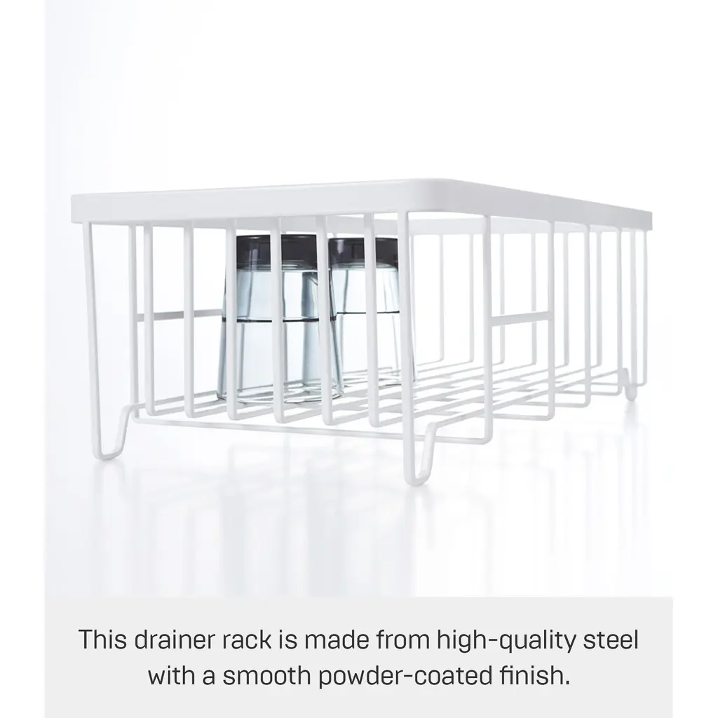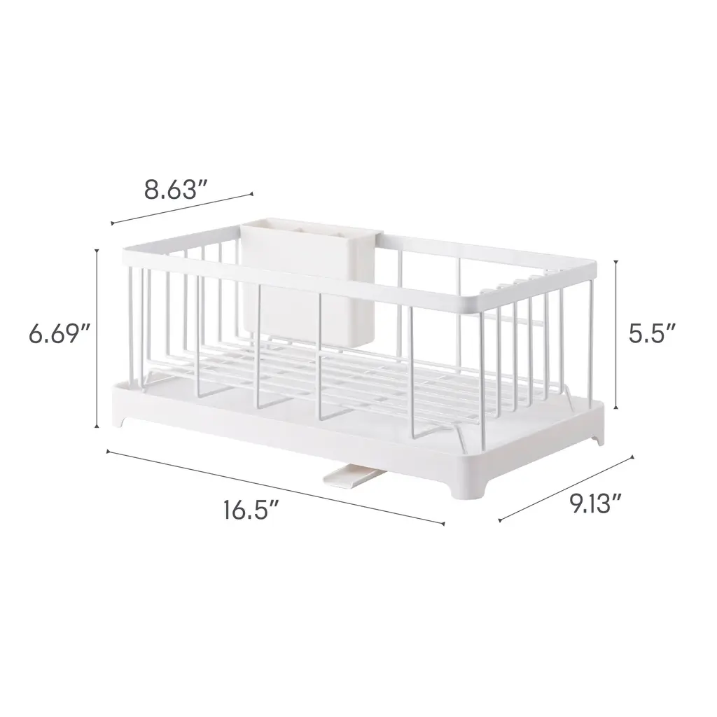 Yamazaki Home Wire Dish Rack, Steel, Holds 17.6 Lbs - L 9.06 X W 16.54 X H 6.69 Inches - White