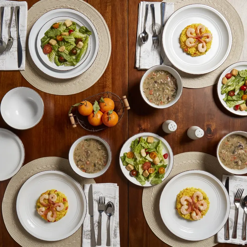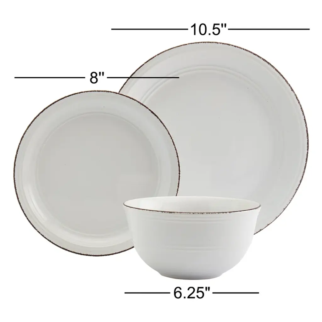 Upgrade your dinner table with this 12-piece stoneware dinnerware set, designed to serve four with ease. Each set includes four dinner plates, four salad plates, and four cereal bowls, all in a round shape with a glossy finish and a pop of color on the rim. Crafted from lead-free and PTFE-free stoneware, these pieces are dishwasher, oven, and microwave safe, making meal prep and cleanup a breeze. Plus, they're stackable and scratch-resistant, ensuring your tableware stays looking fresh for countless family dinners and gatherings.
