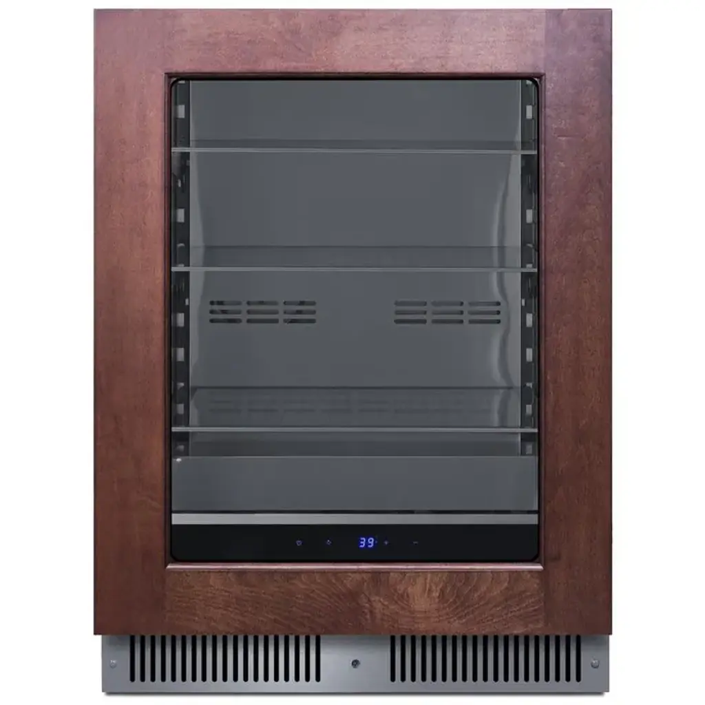 Our preserved beverage cooler is as chill as it looks and is always ready to party. Featuring a full-extension wood rack to hold your favorite wine and craft brew and a convenient retractable glass quarter-shelf that gives you the flexibility to display taller bottles such as water, 2-liter bottles of soda, or champagne. New enhancements include mood-setting led light strips in three colors and four light levels and an updated kickplate with a lock.