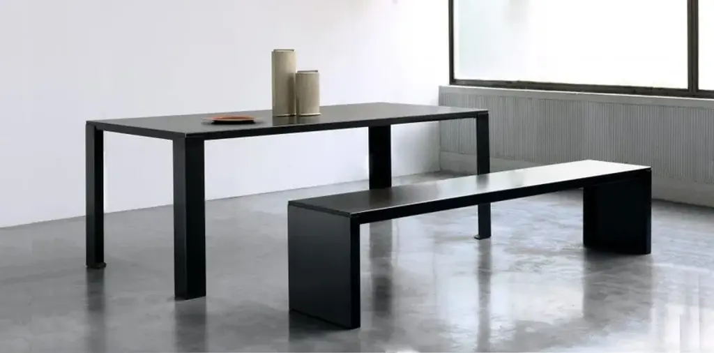 Big Irony is a metal bench.Frame/seat: Black phosphatized sheet steel.Characteristics and maintenance instructions:BIG IRONY products have intentionally not been painted becauseit is the surface irregularity the characteristic which makes them sospecial. The daily use will form stains forming a patina which rendersthe surface even more beautiful. To clean it use a non aggressive/soft detergent as it would be wood.