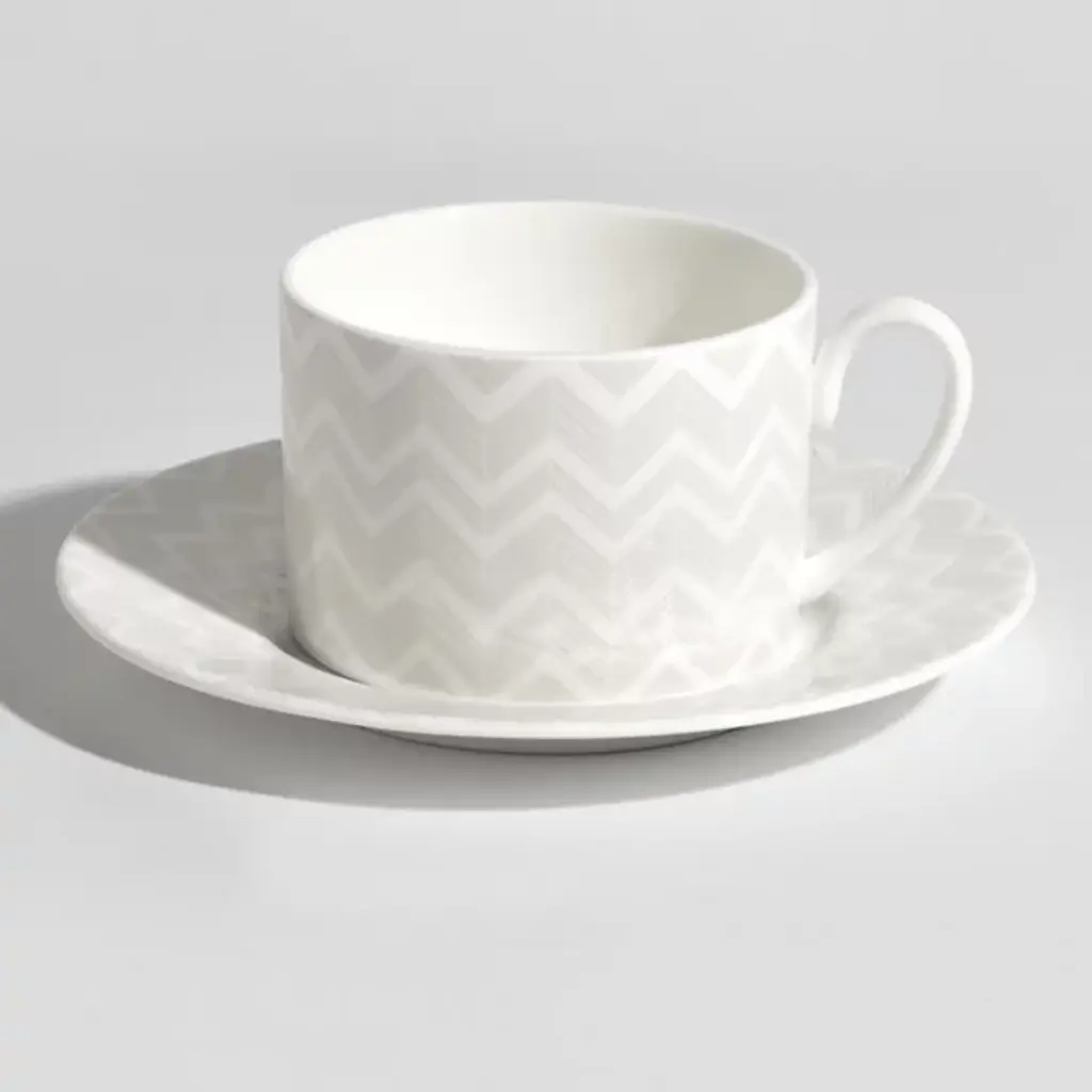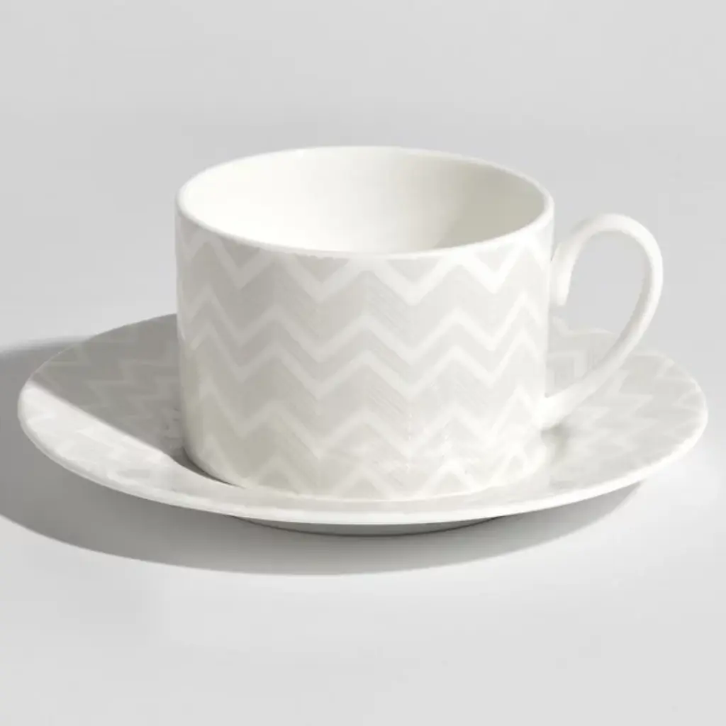 The Zig Zag Coffee Cup & Saucer, Set of 2, from Missoni infuses every sip with bold design, featuring the brand’s signature zigzag pattern, a hallmark of its zig zag stitching, and part of a storied textile legacy that has existed since the 1960s. Made from fine bone china, this set combines everyday function with vibrant artistry. Packaged in a luxury box, it’s a distinctive addition to any coffee ritual or collection.