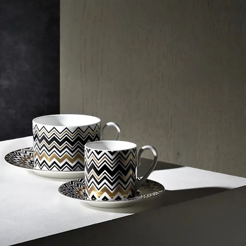 The Zig Zag Tea Cup & Saucer, Set of 2, from Missoni celebrates the brand’s iconic zigzag pattern, a signature of its design heritage since the 1960s. With bold, rhythmic lines adding a dynamic touch, this bone china set brings a playful yet refined element to any tea ritual. Dishwasher-safe and microwave-friendly (except for gold accents), it’s designed for both standout style and convenience.