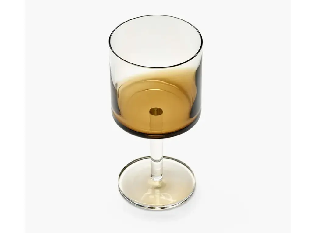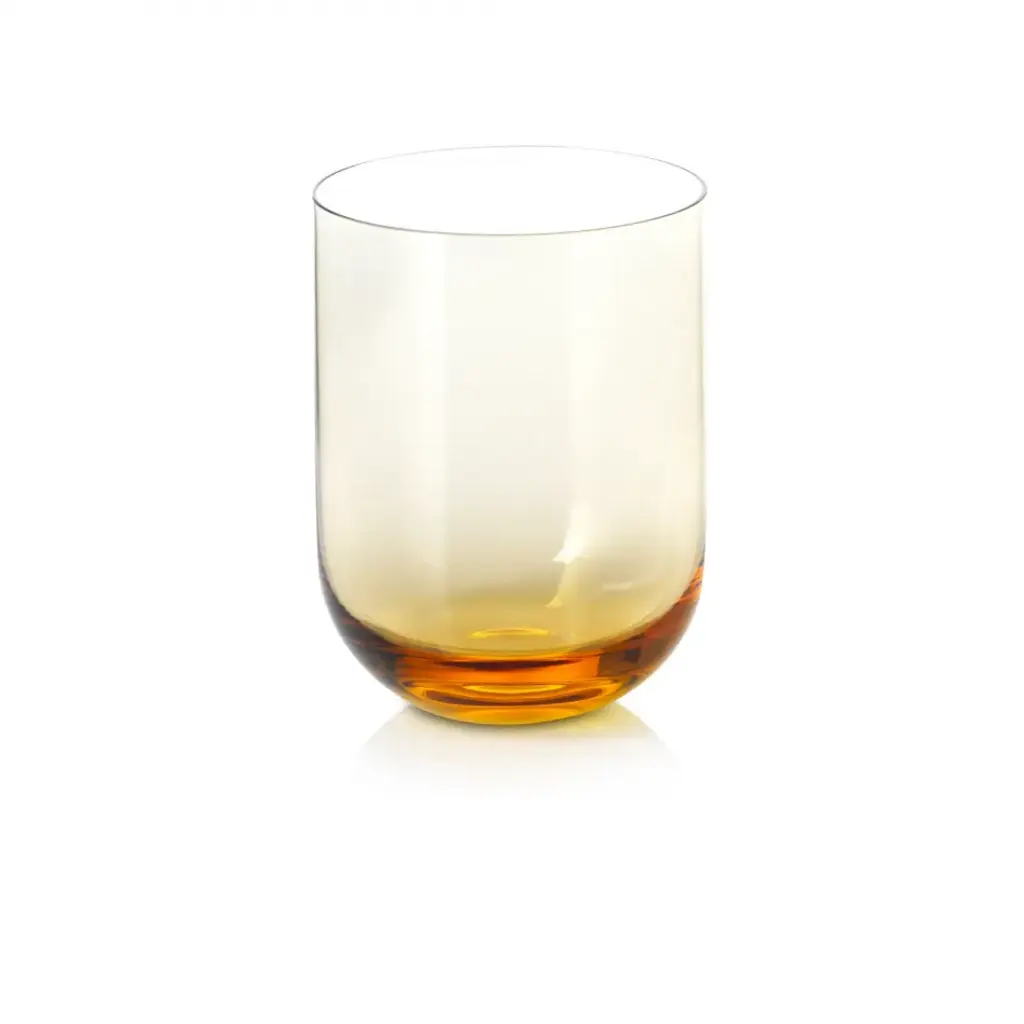 The amber-coloured tone, created by three layers of glass, gives this 'Zuma' red wine glass a vintage look reminiscent of antique glassware worldwide. The colour gradient contrasts with the robust glass base and the sleek shape, making this red wine glass an indispensable item for any wine lover.Material: potassium glassDishwasher resistant: yesKelly Wearstler started from a digital graphic pattern, inspired by Bauhaus principles, to design Zuma, her range of porcelain tableware. Each pattern is hand-stamped onto the pieces for a hand-painted look and feel, after which the glaze is applied. The patterns vary and you can easily mix and match the different shapes and colors – white, dark gray, and soft orange which is used as an accent color.
