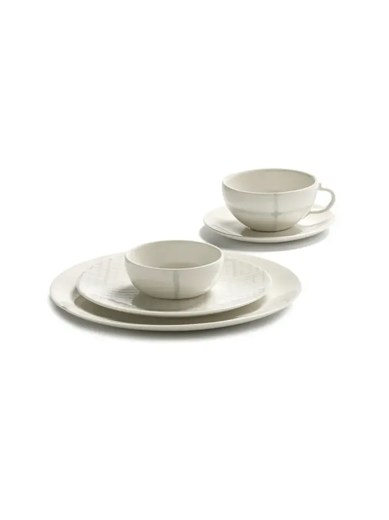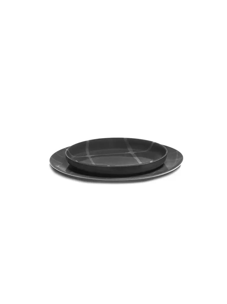 With the tall Zuma plates, you bring a combination of style and efficiency into your home. The appearance of hand-painted pieces is intertwined with the precision of digital printing techniques.Material: porcelainProduct finish: glazedDishwasher resistant: yesMicrowave oven resistant: yesOven resistant: yesMax. oven temperature °C: 200 celsiusFood-safe: yes Kelly Wearstler started from a digital graphic pattern, inspired by Bauhaus principles, to design Zuma, her range of porcelain tableware. Each pattern is hand-stamped onto the pieces for a hand-painted look and feel, after which the glaze is applied. The patterns vary and you can easily mix and match the different shapes and colors – white, dark gray, and soft orange which is used as an accent color.