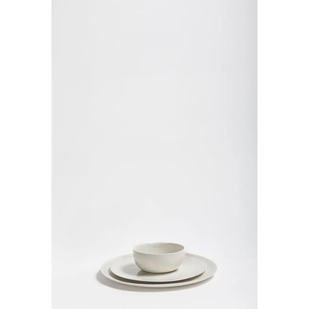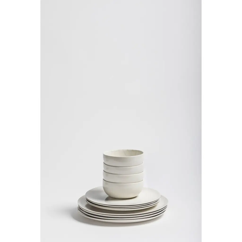 Serax's 12-piece Zuma set includes 4 breakfast plates, 4 dinner plates and 4 small bowls, providing all the essential plates for a four-person table setting. This set also makes a great gift for newlyweds or anyone moving into a new home. Zuma plates boast a delicate, geometric line pattern inspired by the minimalist design principles of Bauhaus. The hand-stamped porcelain plates have been finished with a glazing. Kelly Wearstler's Zuma collection is a harmonious blend of porcelain tableware and elegant glassware, all sharing earthy tones and an ergonomically pleasing design. The different colors and patterns in the Zuma collection seamlessly complement each other, making mixing and matching a delightful possibility.