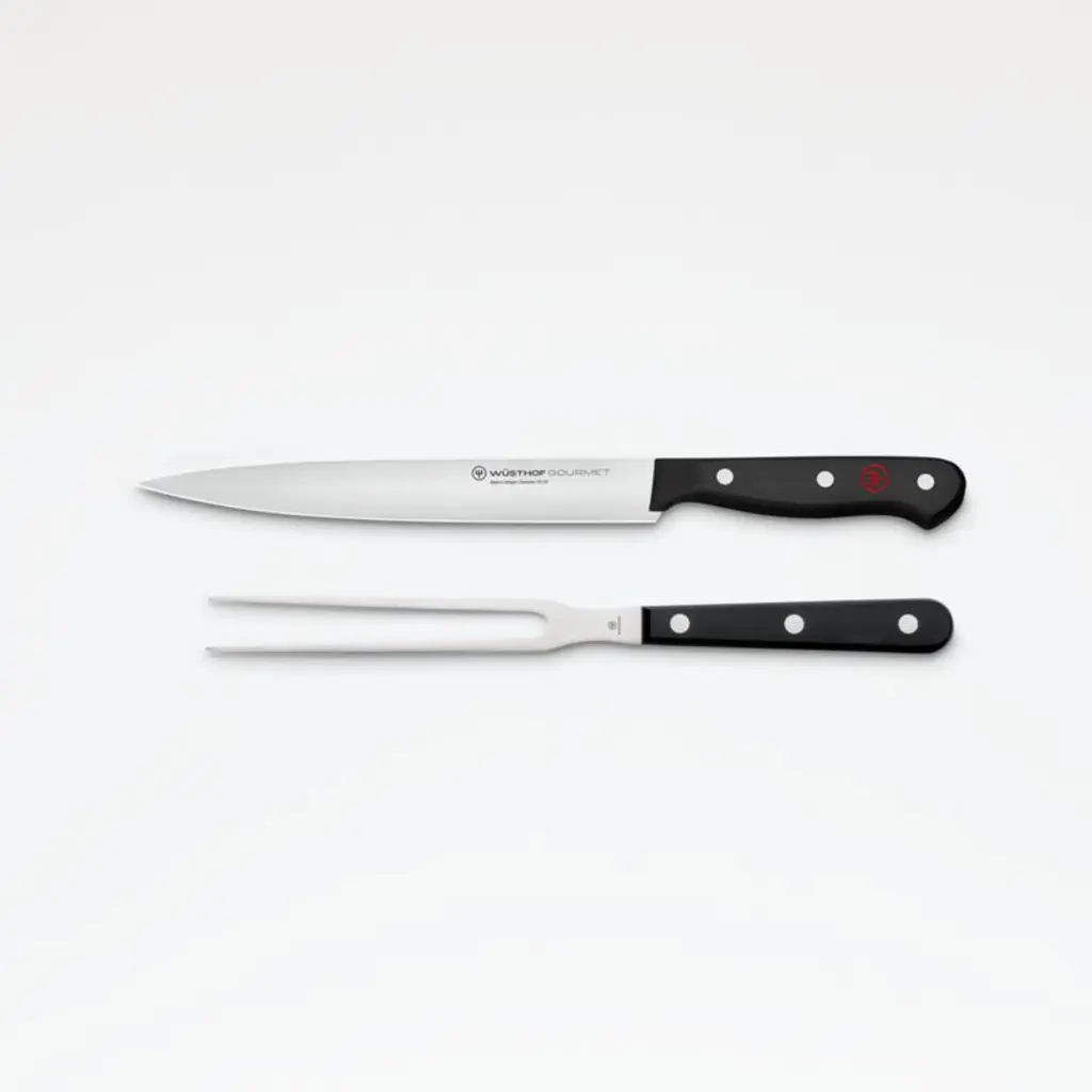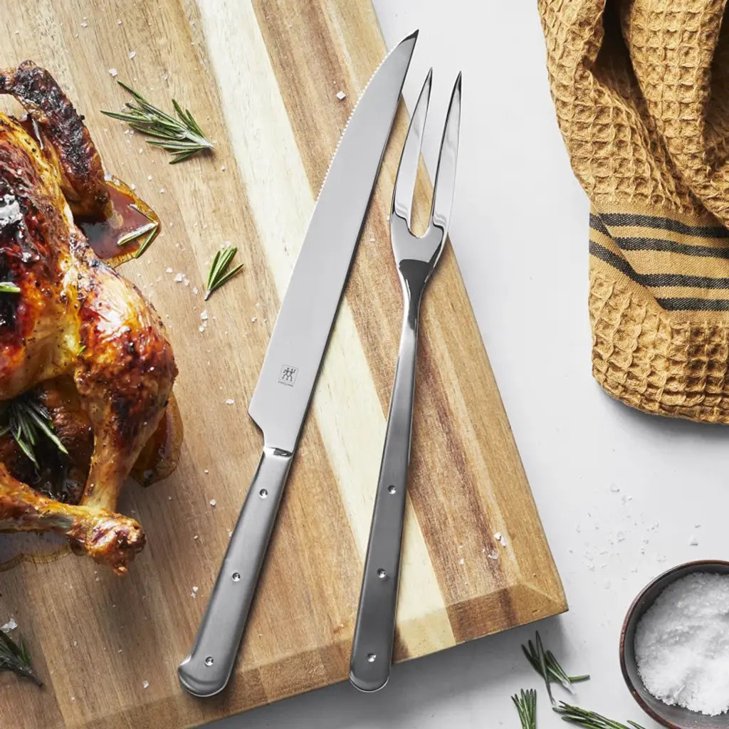 Zwilling Porterhouse 2Pc Stainless Steel Carving Knife Set With Fork In Red Presentation Box, Gift Set