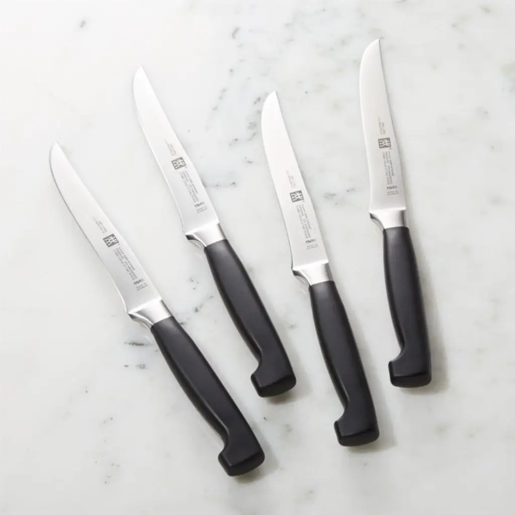 Bringing to bear 280 years of experience making and studying knives, Zwilling J.A. Henckels has created some of the most user-friendly knives on the market in its Pro series. These two prep knives boast blades forged from high-carbon stainless steel and ice-hardened for durability. Fitted with triple-riveted black handles, the serrated and fine-edge prep knives excel at peeling fruit, chopping vegetables, deveining shrimp, butterflying chicken and more. This versatile pair will be your go-to knives for everyday cutting tasks.ZWILLING of Germany has been crafting fine blades for nearly three centuries.