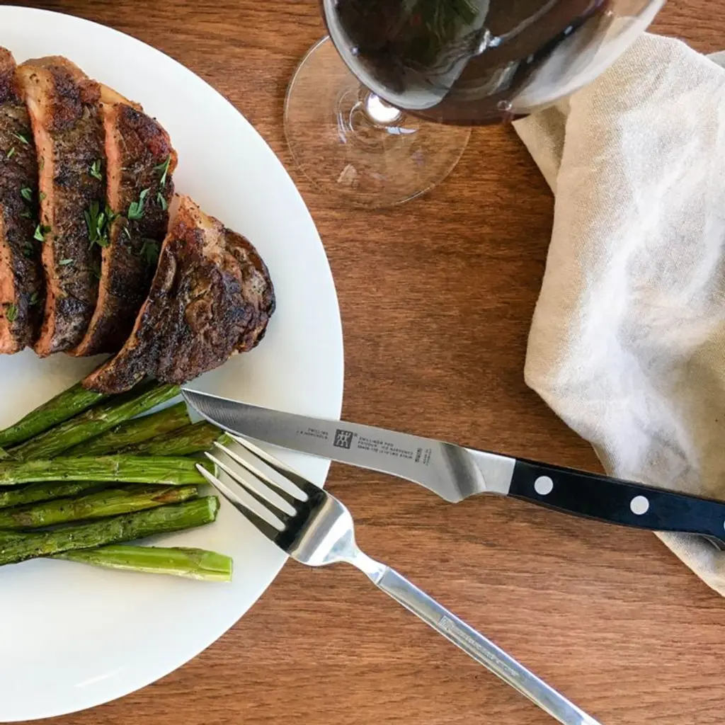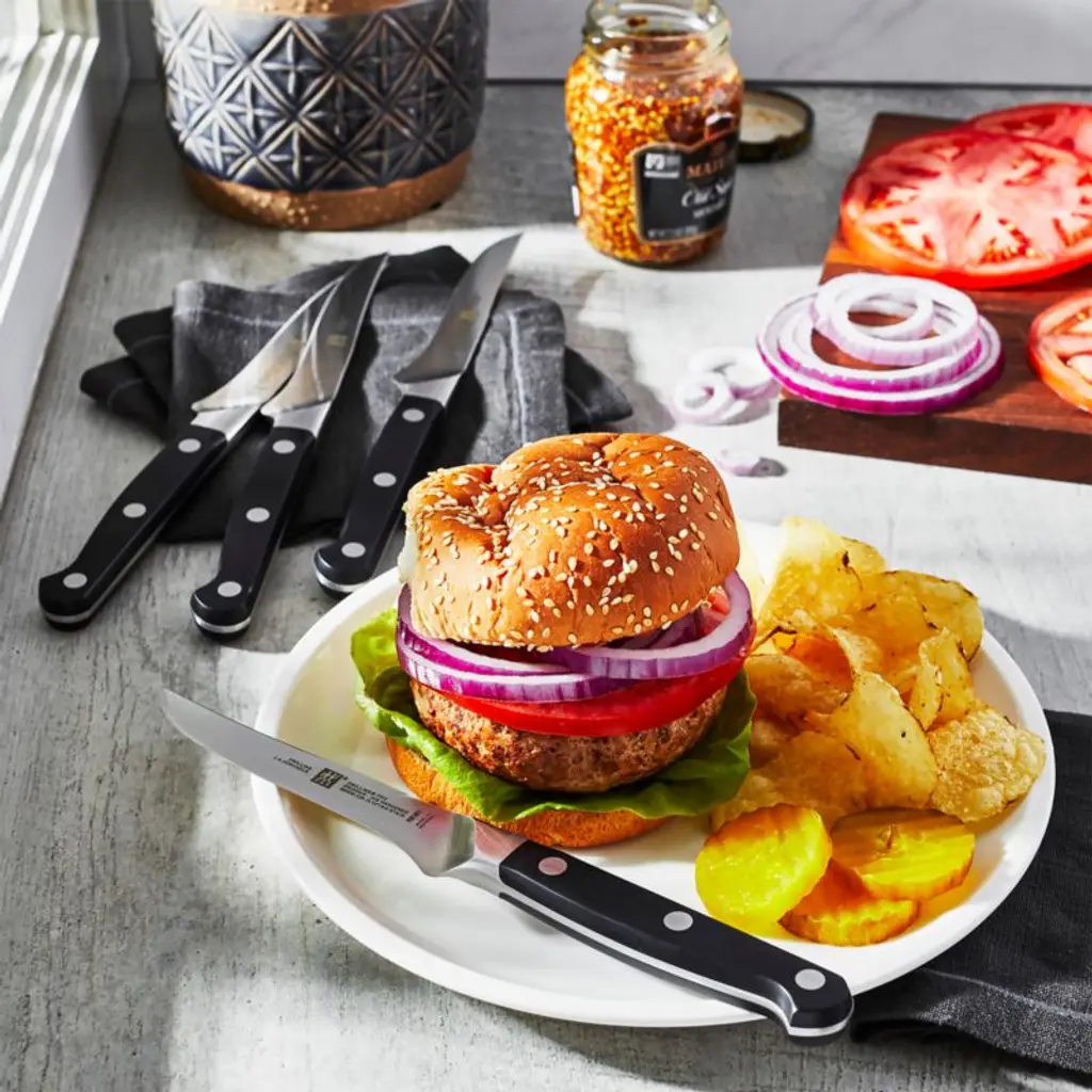 This set of steak knives feature an innovative curved bolster that acts as an extension of the hand, supporting a pinch grip for optimal cutting of steaks and chops. Forged from a single piece of steel, the ice-hardened blades are incredibly sharp, maintaining a long-lasting edge and will not stain or chip.View our Zwilling Cutlery comparison chart. Need help choosing? Here's your essential guide to choosing the best knife View all Zwilling J.A. Henckels products