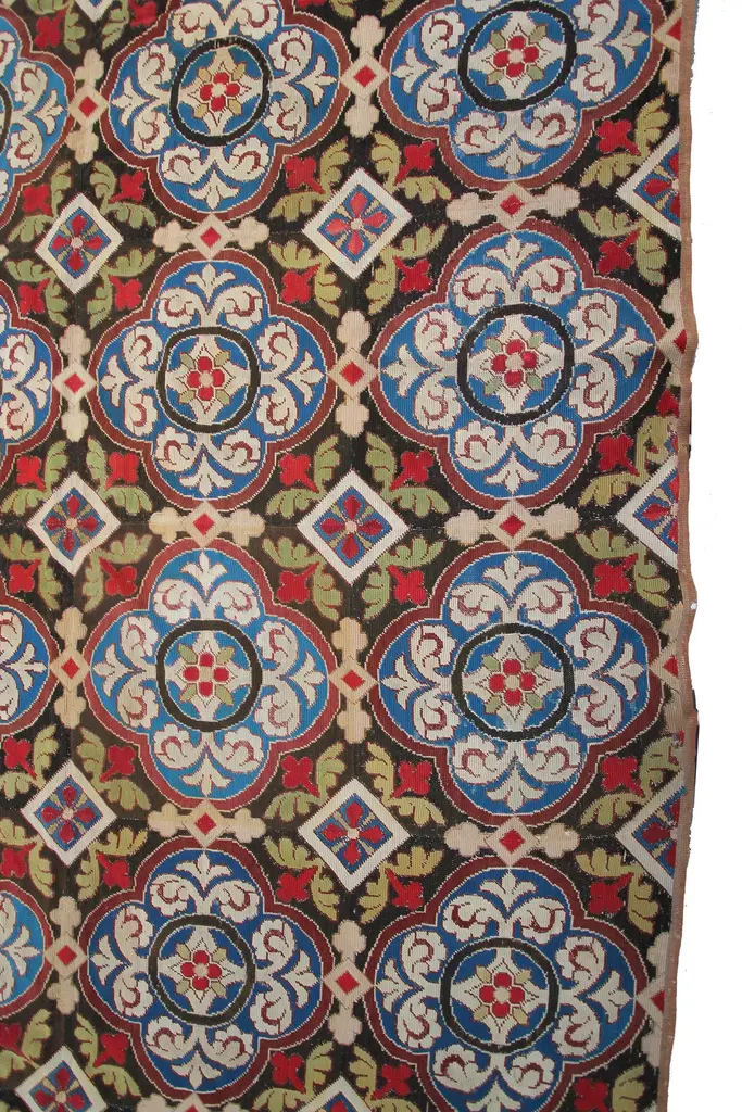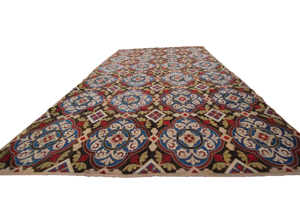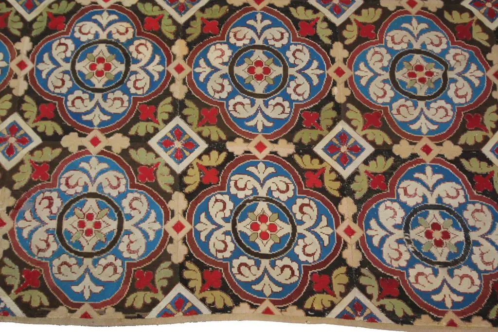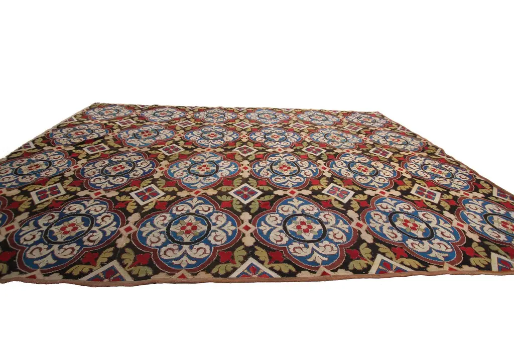 1890 Antique English Needlepoint Overall Geometric Rug Tapestry