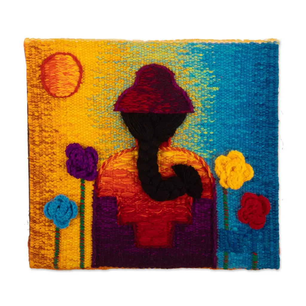 Alpaca Blend Hand Woven Tapestry Of Indigenous Girl- Indigenous Girl In Spring