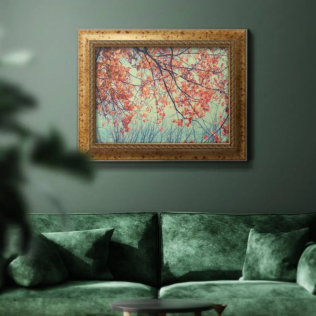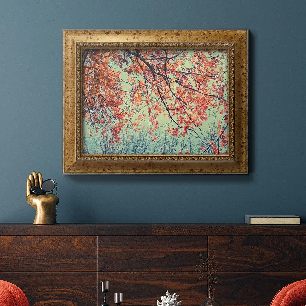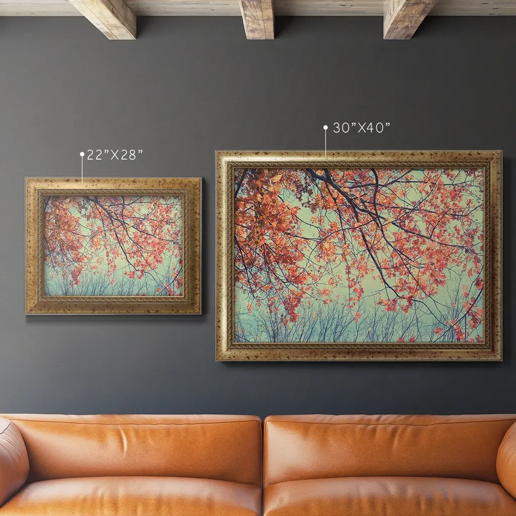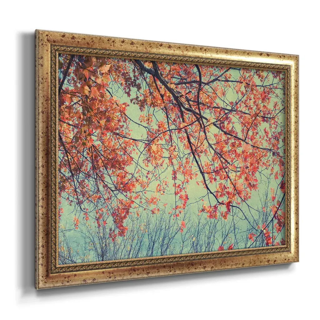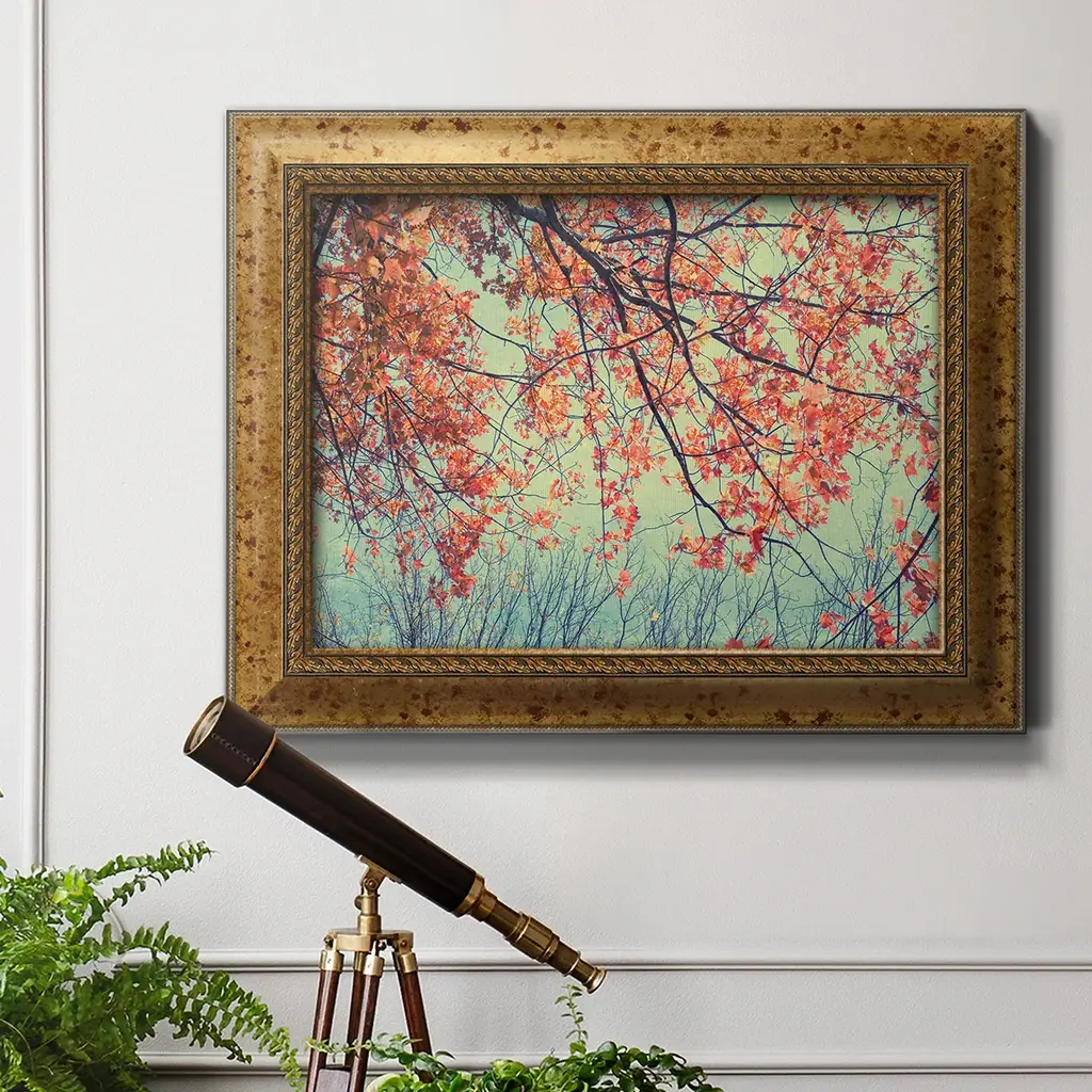 Autumn Tapestry II Premium Framed Canvas- Ready to Hang A Premium Framed Canvas created to last. Framed in distressed wood and available in an array of sizes and colors Featuring a beveled a solid wood stretcher bar, each piece comes ready to hand 3 SIZES AVAILABLE 16''X20'' - Overall Size 18'X27'' - Overall Size 24''x36'' - Overall Size Each piece is made to order. Each piece comes with hanging hardware. Made in the USA Ready to Hang Giclee Paper Print Acrylic Glass Beveled Matt Board