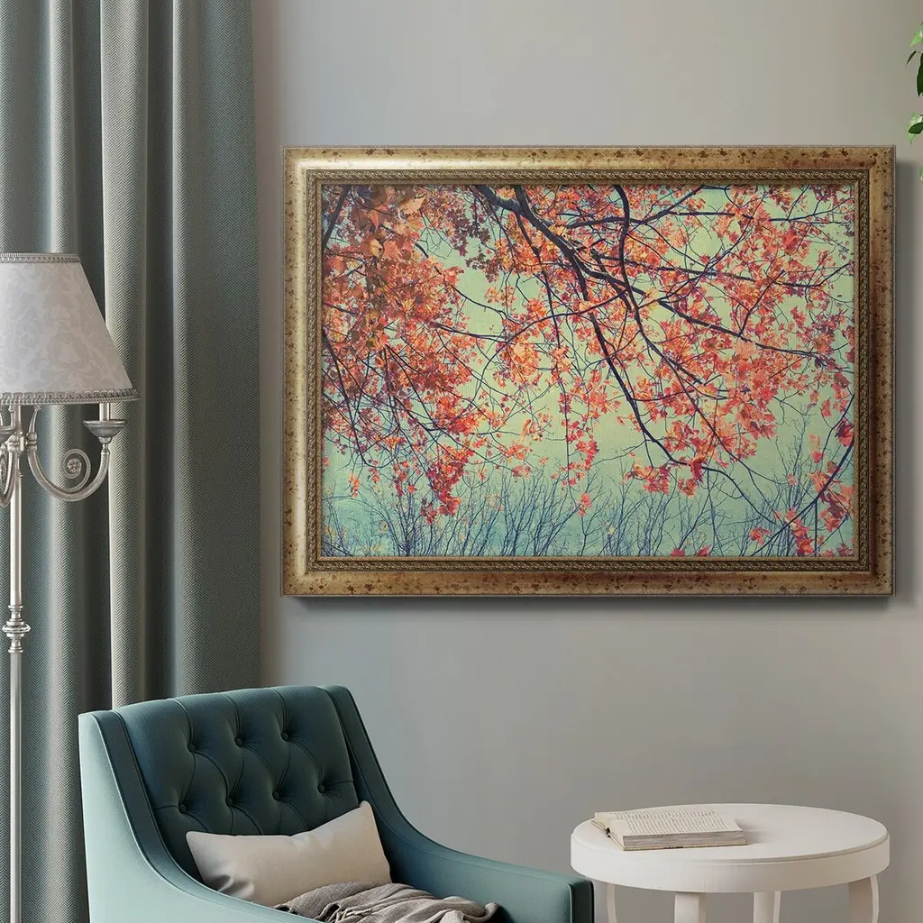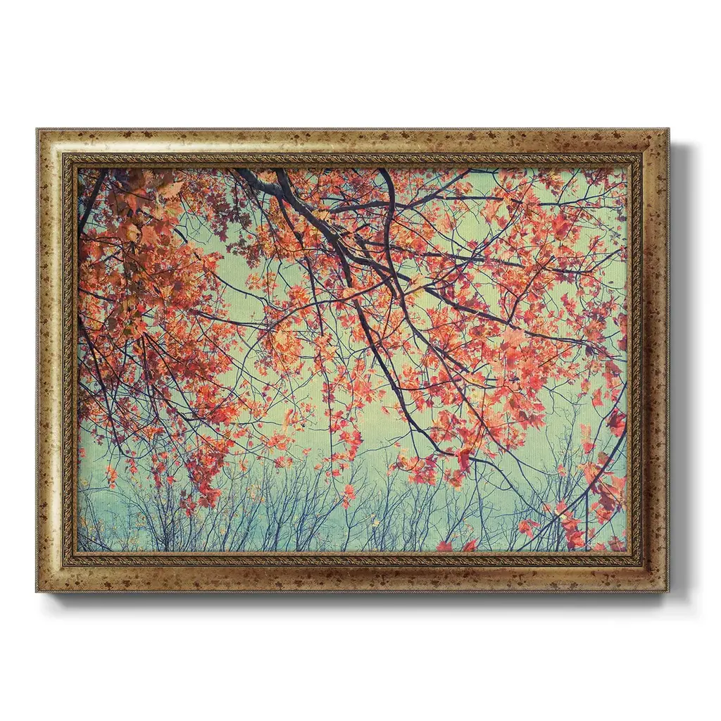 Autumn Tapestry II Premium Framed Canvas- Ready to Hang A Premium Framed Canvas created to last. Framed in distressed wood and available in an array of sizes and colors Featuring a beveled a solid wood stretcher bar, each piece comes ready to hand 3 SIZES AVAILABLE 16''X20'' - Overall Size 18'X27'' - Overall Size 24''x36'' - Overall Size Each piece is made to order. Each piece comes with hanging hardware. Made in the USA Ready to Hang Giclee Paper Print Acrylic Glass Beveled Matt Board