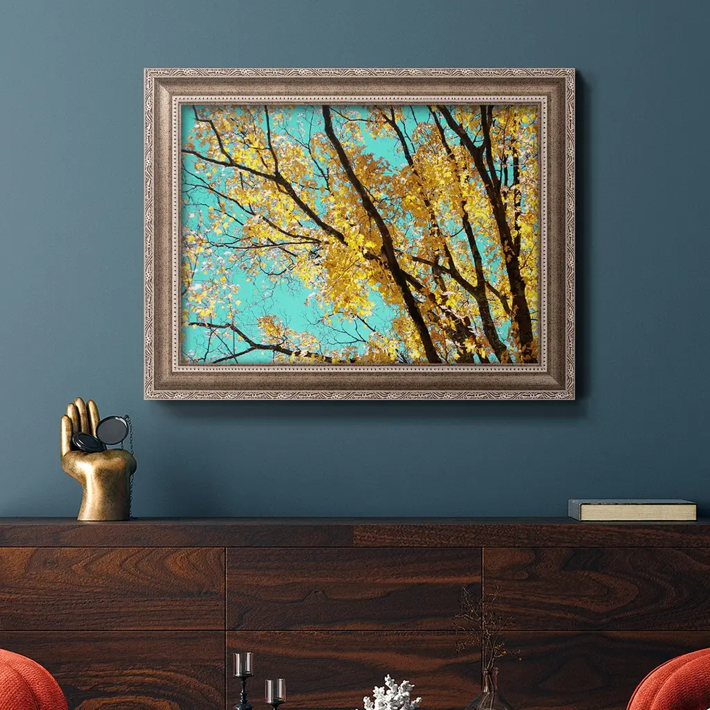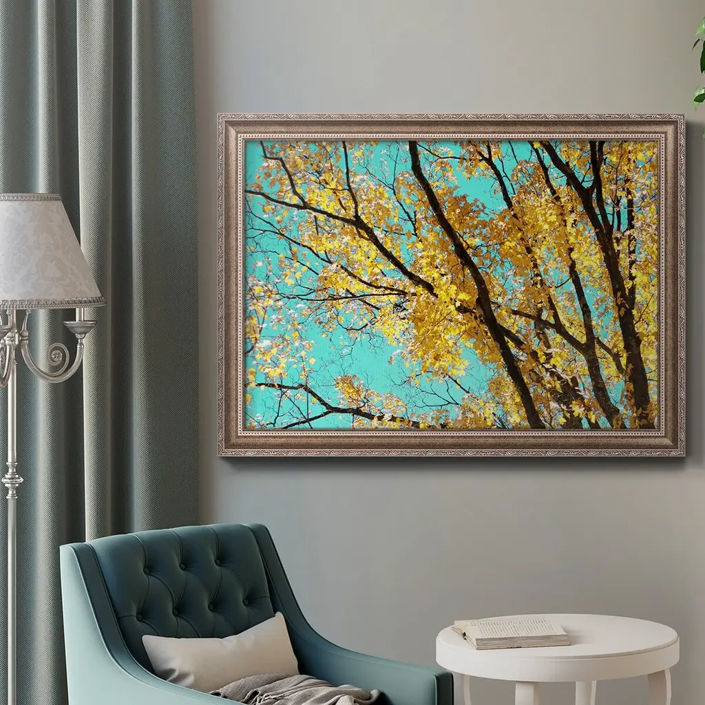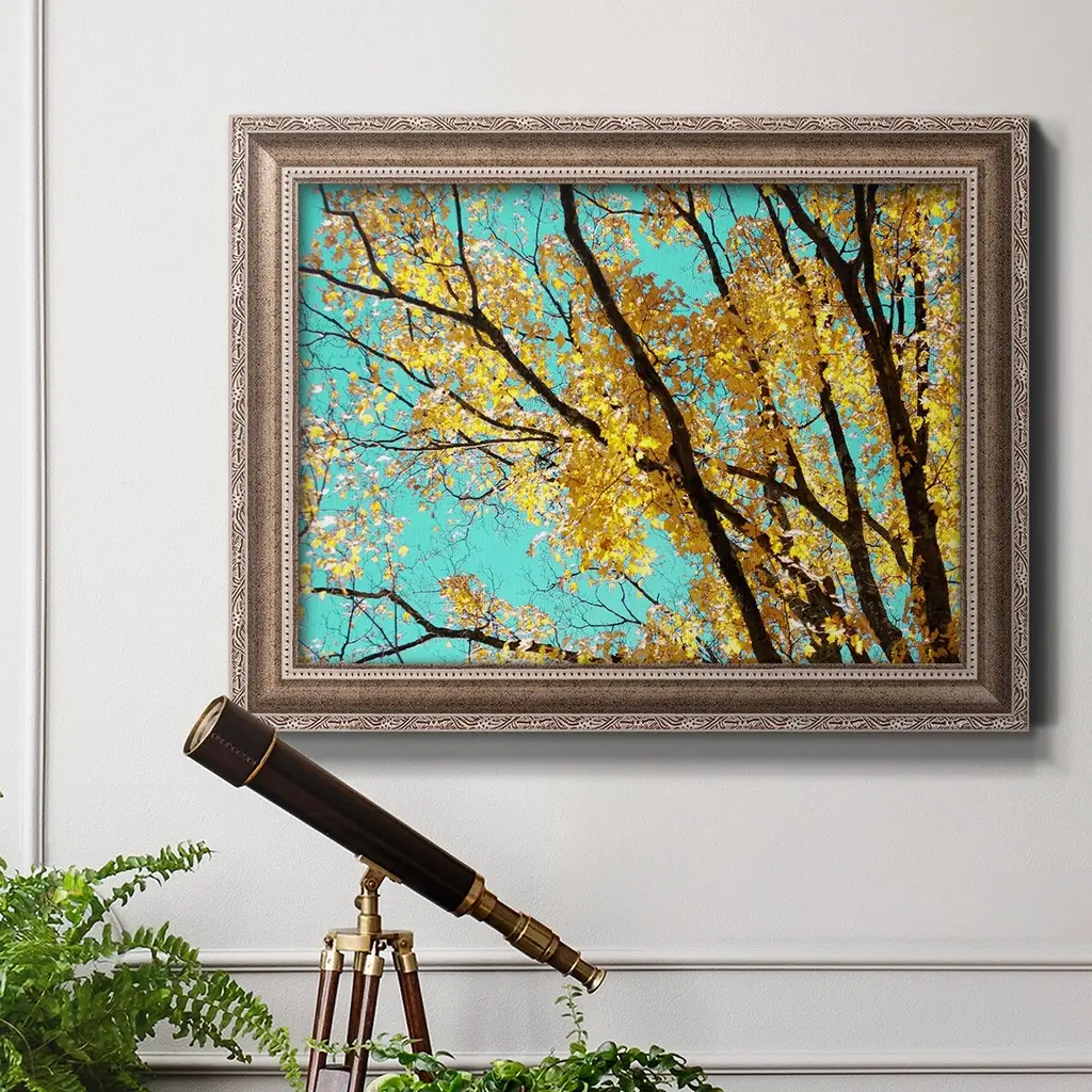 Autumn Tapestry IV Premium Framed Canvas- Ready to Hang A Premium Framed Canvas created to last. Framed in distressed wood and available in an array of sizes and colors Featuring a beveled a solid wood stretcher bar, each piece comes ready to hand 3 SIZES AVAILABLE 16''X20'' - Overall Size 18'X27'' - Overall Size 24''x36'' - Overall Size Each piece is made to order. Each piece comes with hanging hardware. Made in the USA Ready to Hang Giclee Paper Print Acrylic Glass Beveled Matt Board