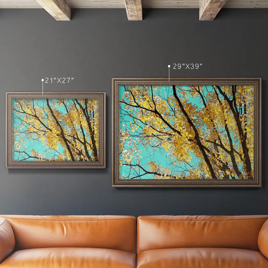 Autumn Tapestry IV Premium Framed Canvas- Ready to Hang A Premium Framed Canvas created to last. Framed in distressed wood and available in an array of sizes and colors Featuring a beveled a solid wood stretcher bar, each piece comes ready to hand 3 SIZES AVAILABLE 16''X20'' - Overall Size 18'X27'' - Overall Size 24''x36'' - Overall Size Each piece is made to order. Each piece comes with hanging hardware. Made in the USA Ready to Hang Giclee Paper Print Acrylic Glass Beveled Matt Board
