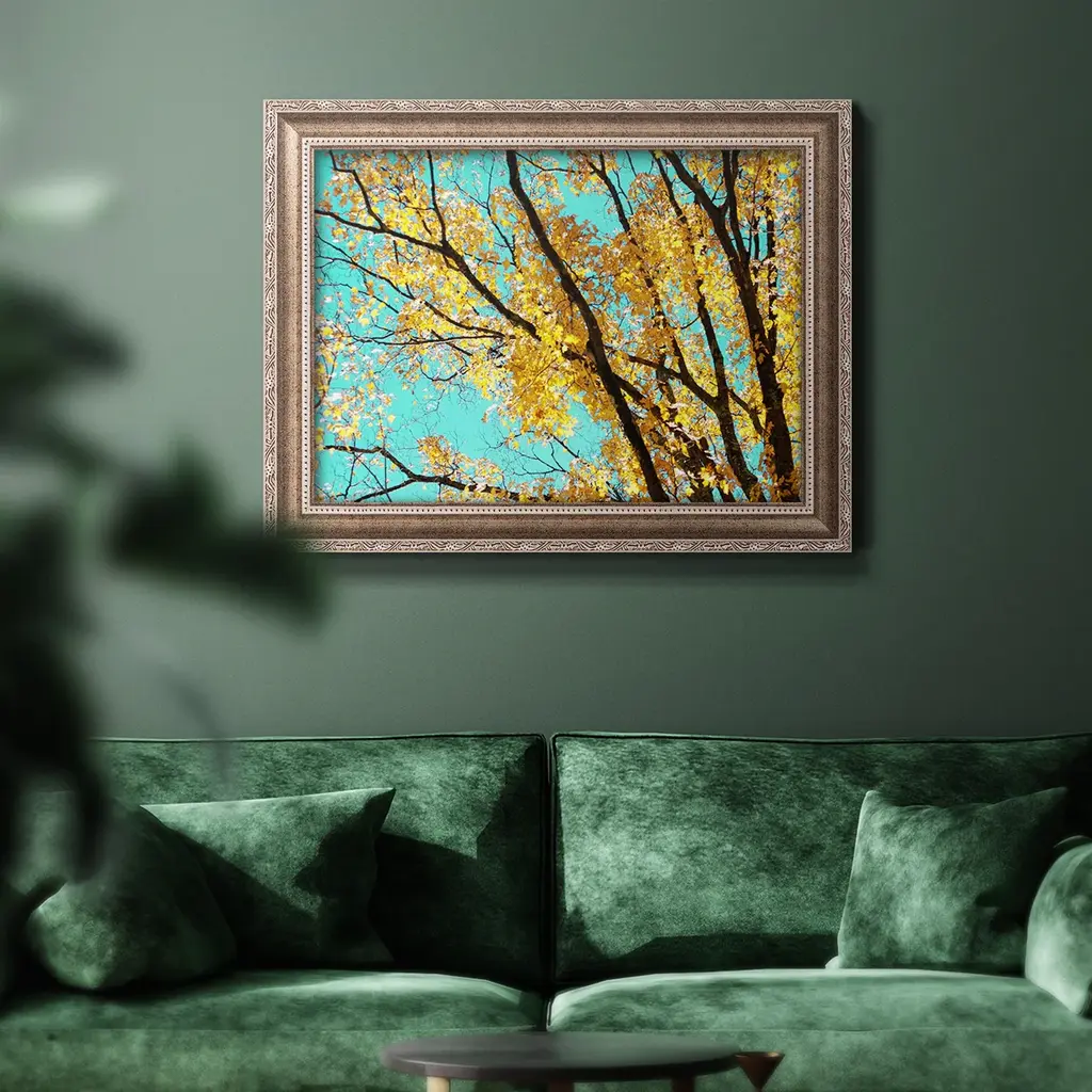 Autumn Tapestry IV Premium Framed Canvas- Ready to Hang A Premium Framed Canvas created to last. Framed in distressed wood and available in an array of sizes and colors Featuring a beveled a solid wood stretcher bar, each piece comes ready to hand 3 SIZES AVAILABLE 16''X20'' - Overall Size 18'X27'' - Overall Size 24''x36'' - Overall Size Each piece is made to order. Each piece comes with hanging hardware. Made in the USA Ready to Hang Giclee Paper Print Acrylic Glass Beveled Matt Board