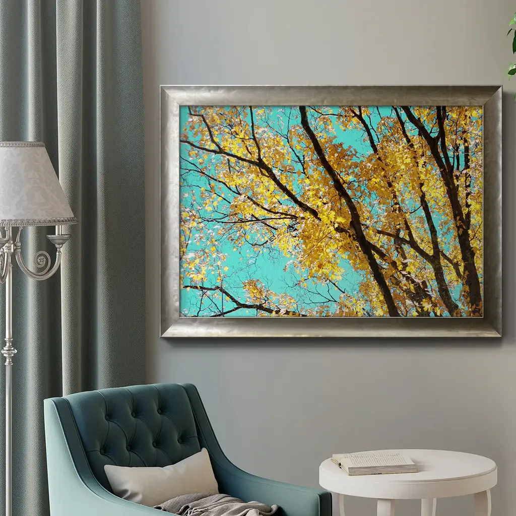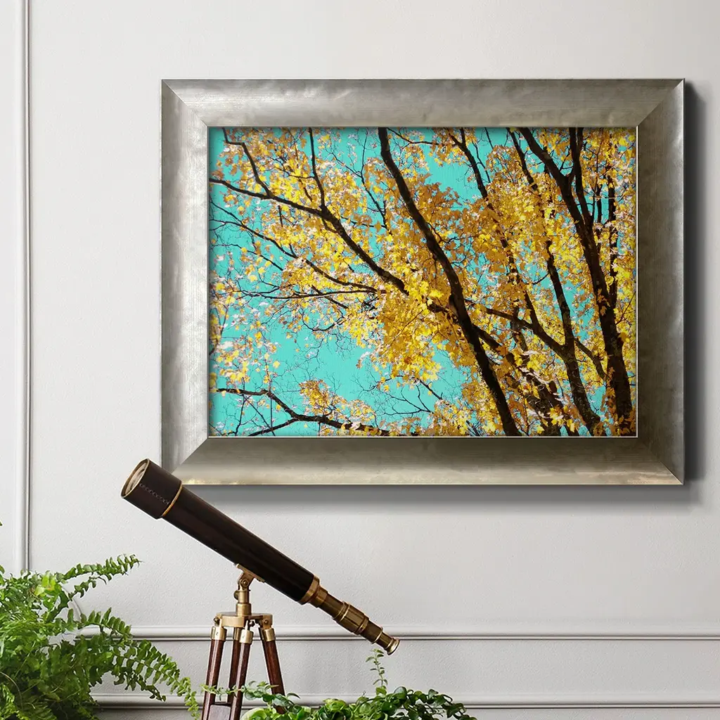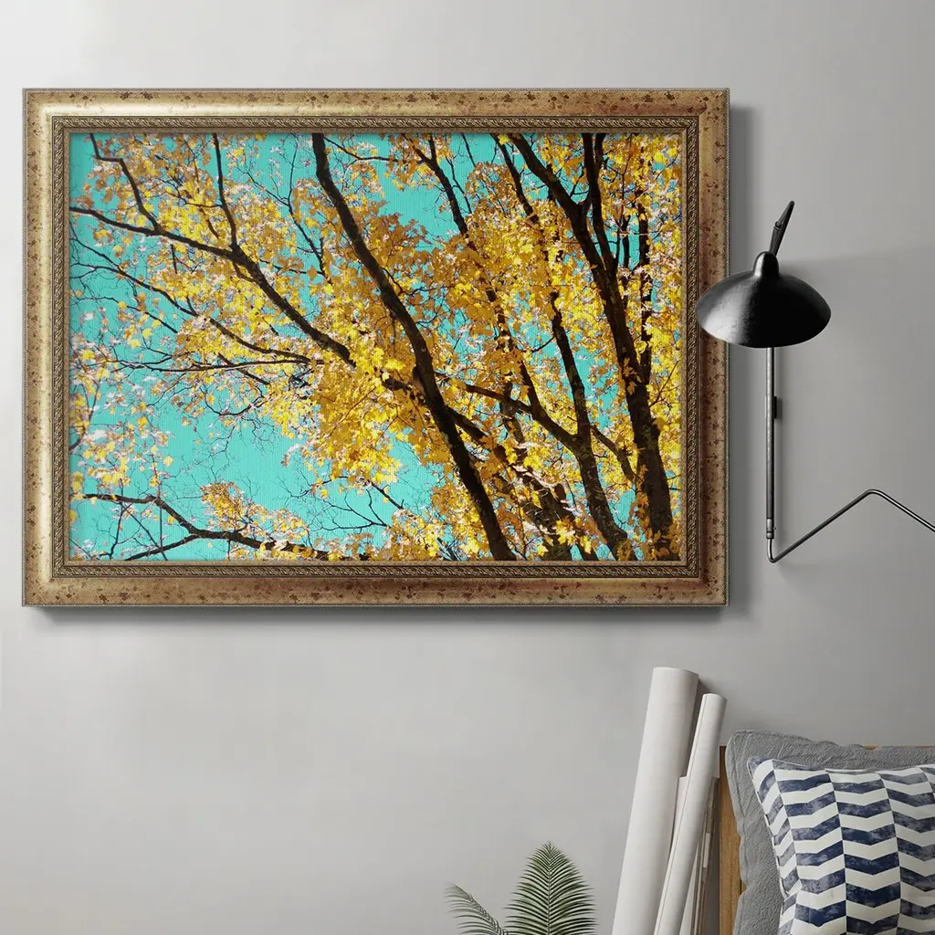 Autumn Tapestry IV Premium Framed Canvas- Ready to Hang A Premium Framed Canvas created to last. Framed in distressed wood and available in an array of sizes and colors Featuring a beveled a solid wood stretcher bar, each piece comes ready to hand 3 SIZES AVAILABLE 16''X20'' - Overall Size 18'X27'' - Overall Size 24''x36'' - Overall Size Each piece is made to order. Each piece comes with hanging hardware. Made in the USA Ready to Hang Giclee Paper Print Acrylic Glass Beveled Matt Board