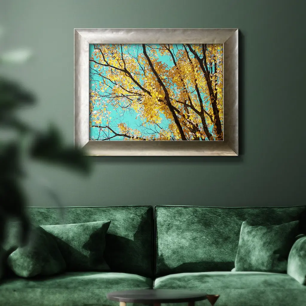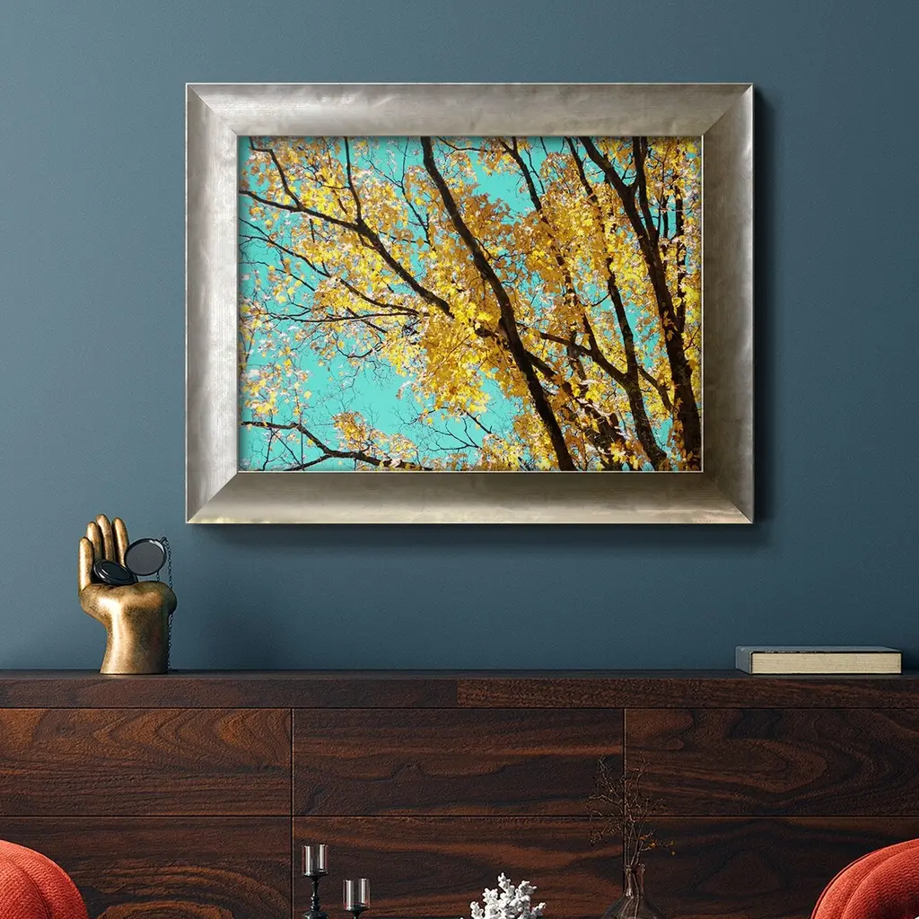 Autumn Tapestry IV Premium Framed Canvas- Ready to Hang A Premium Framed Canvas created to last. Framed in distressed wood and available in an array of sizes and colors Featuring a beveled a solid wood stretcher bar, each piece comes ready to hand 3 SIZES AVAILABLE 16''X20'' - Overall Size 18'X27'' - Overall Size 24''x36'' - Overall Size Each piece is made to order. Each piece comes with hanging hardware. Made in the USA Ready to Hang Giclee Paper Print Acrylic Glass Beveled Matt Board