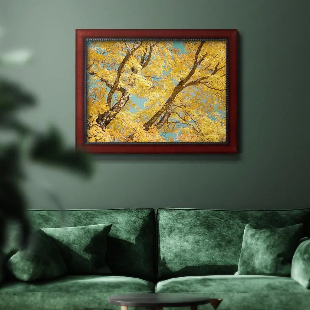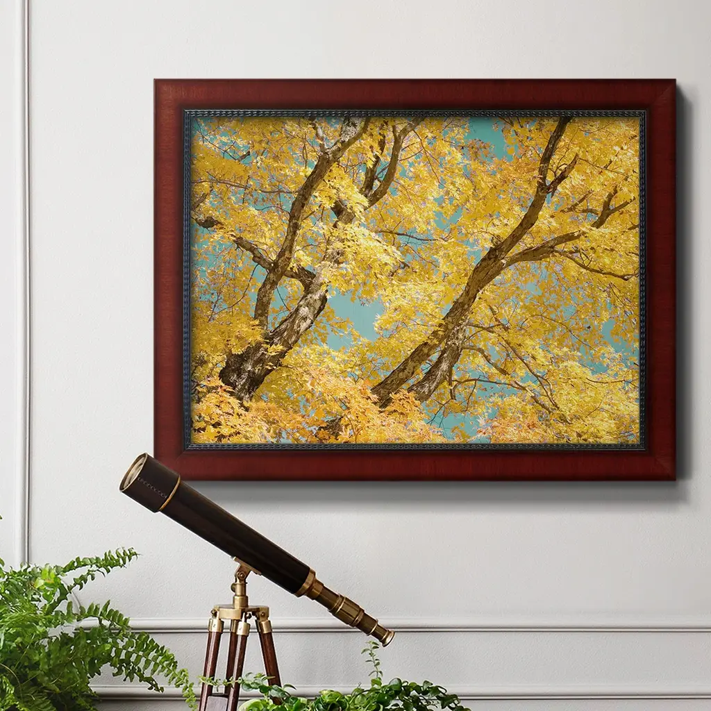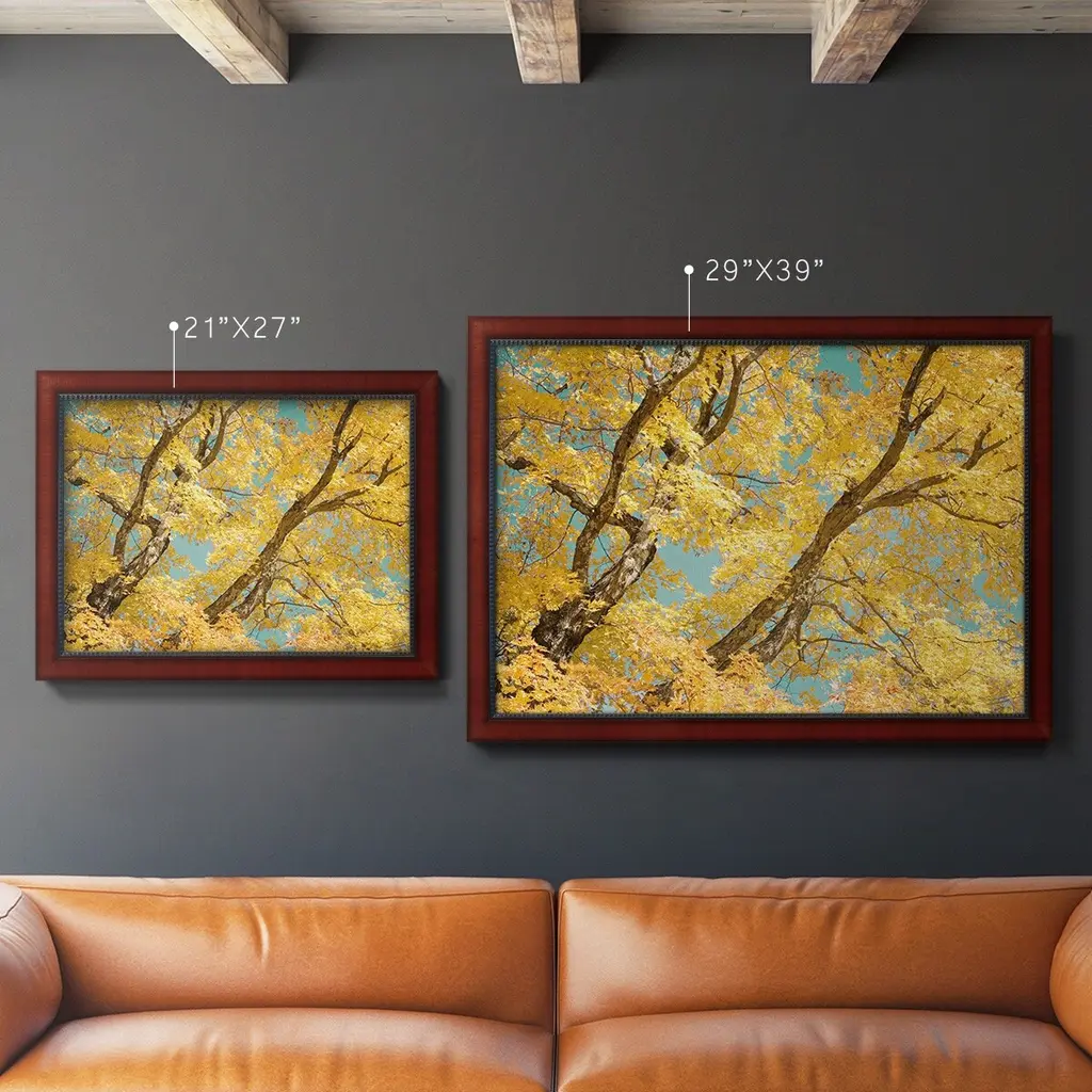 Autumn Tapestry V Premium Framed Canvas- Ready to Hang A Premium Framed Canvas created to last. Framed in distressed wood and available in an array of sizes and colors Featuring a beveled a solid wood stretcher bar, each piece comes ready to hand 3 SIZES AVAILABLE 16''X20'' - Overall Size 18'X27'' - Overall Size 24''x36'' - Overall Size Each piece is made to order. Each piece comes with hanging hardware. Made in the USA Ready to Hang Giclee Paper Print Acrylic Glass Beveled Matt Board