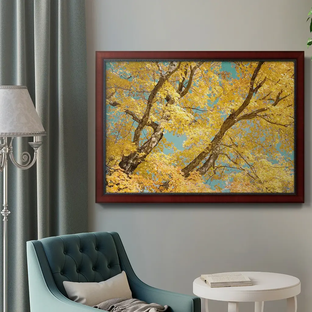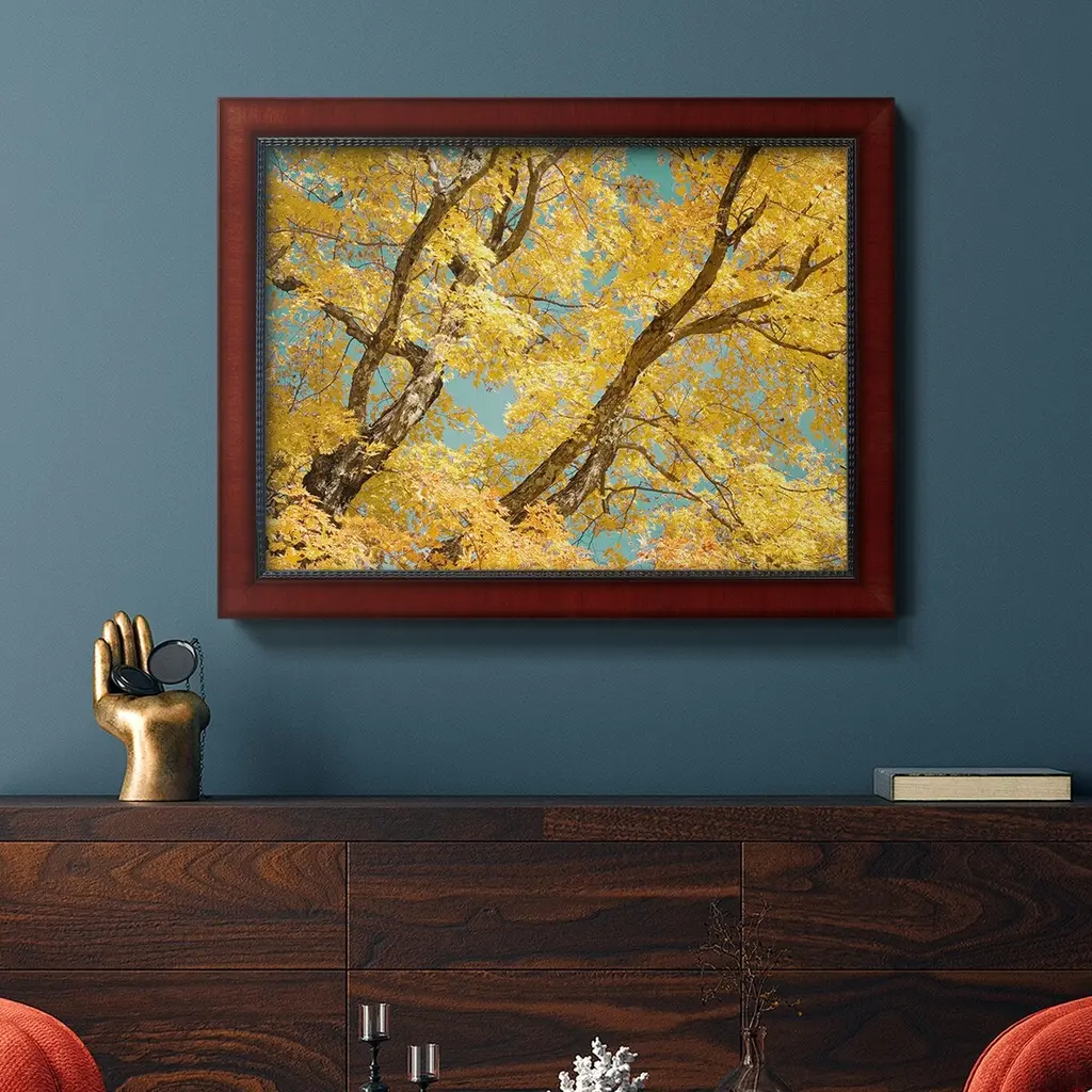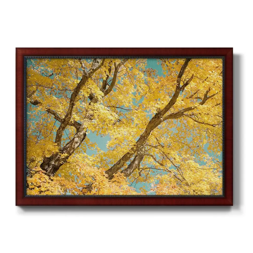 Autumn Tapestry V Premium Framed Canvas- Ready to Hang A Premium Framed Canvas created to last. Framed in distressed wood and available in an array of sizes and colors Featuring a beveled a solid wood stretcher bar, each piece comes ready to hand 3 SIZES AVAILABLE 16''X20'' - Overall Size 18'X27'' - Overall Size 24''x36'' - Overall Size Each piece is made to order. Each piece comes with hanging hardware. Made in the USA Ready to Hang Giclee Paper Print Acrylic Glass Beveled Matt Board