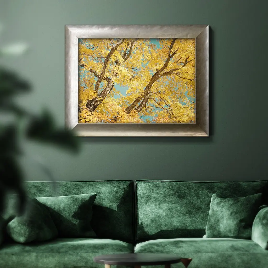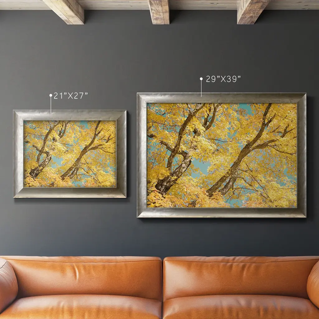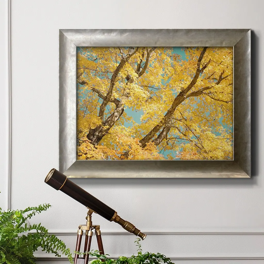 Autumn Tapestry V Premium Framed Canvas- Ready to Hang A Premium Framed Canvas created to last. Framed in distressed wood and available in an array of sizes and colors Featuring a beveled a solid wood stretcher bar, each piece comes ready to hand 3 SIZES AVAILABLE 16''X20'' - Overall Size 18'X27'' - Overall Size 24''x36'' - Overall Size Each piece is made to order. Each piece comes with hanging hardware. Made in the USA Ready to Hang Giclee Paper Print Acrylic Glass Beveled Matt Board