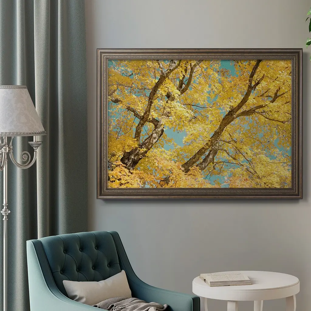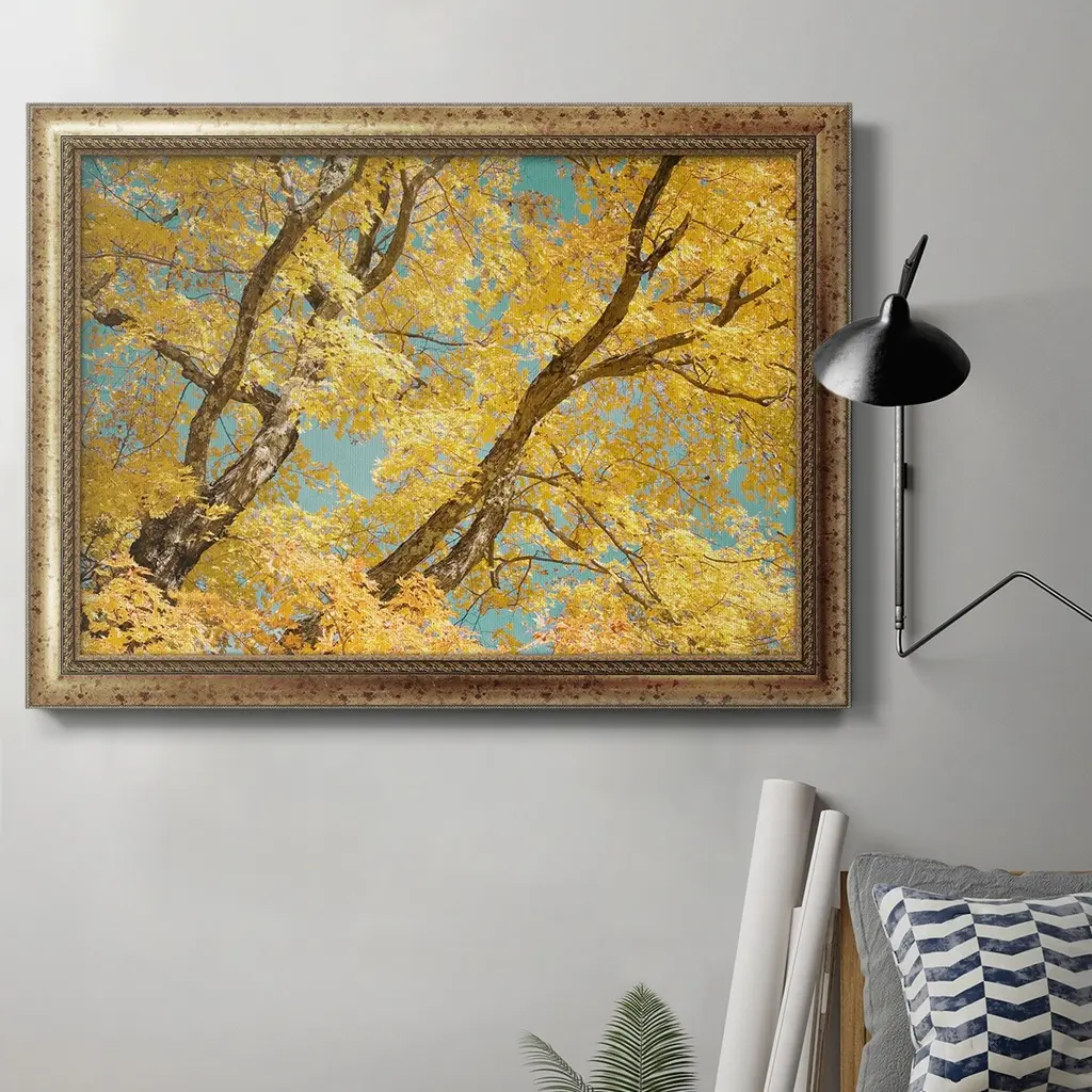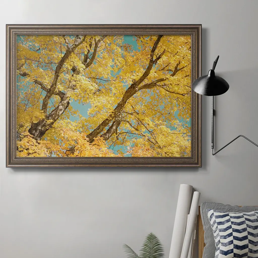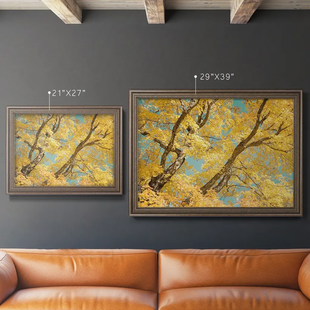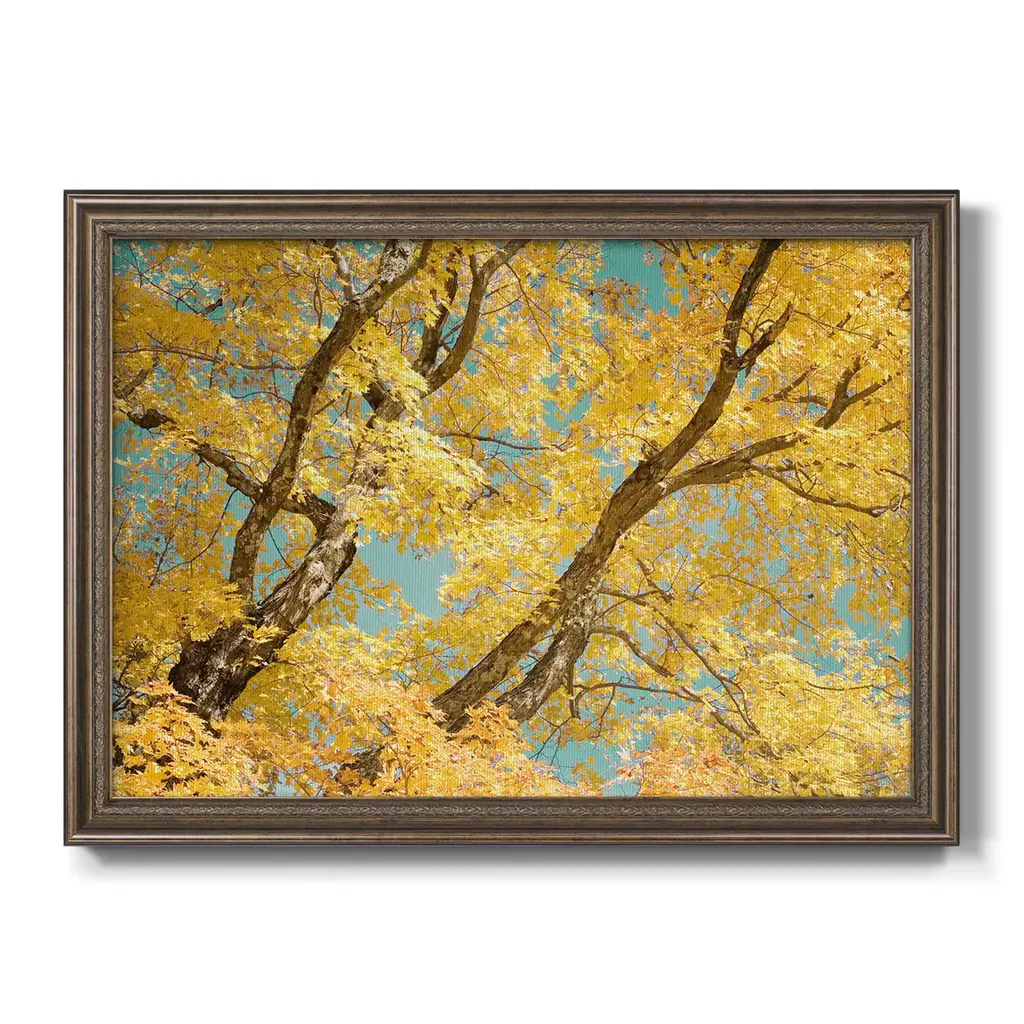 Autumn Tapestry V Premium Framed Canvas- Ready to Hang A Premium Framed Canvas created to last. Framed in distressed wood and available in an array of sizes and colors Featuring a beveled a solid wood stretcher bar, each piece comes ready to hand 3 SIZES AVAILABLE 16''X20'' - Overall Size 18'X27'' - Overall Size 24''x36'' - Overall Size Each piece is made to order. Each piece comes with hanging hardware. Made in the USA Ready to Hang Giclee Paper Print Acrylic Glass Beveled Matt Board
