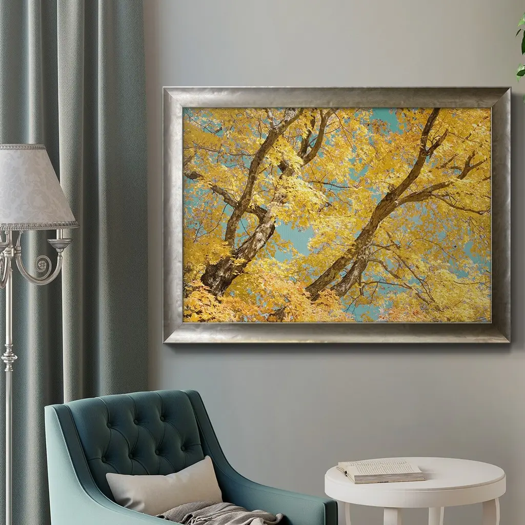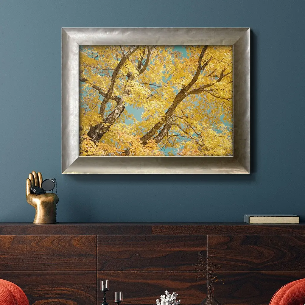Autumn Tapestry V Premium Framed Canvas- Ready to Hang A Premium Framed Canvas created to last. Framed in distressed wood and available in an array of sizes and colors Featuring a beveled a solid wood stretcher bar, each piece comes ready to hand 3 SIZES AVAILABLE 16''X20'' - Overall Size 18'X27'' - Overall Size 24''x36'' - Overall Size Each piece is made to order. Each piece comes with hanging hardware. Made in the USA Ready to Hang Giclee Paper Print Acrylic Glass Beveled Matt Board