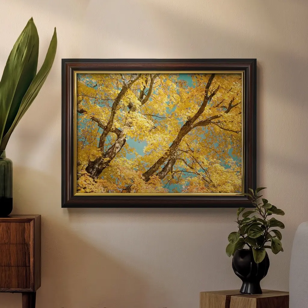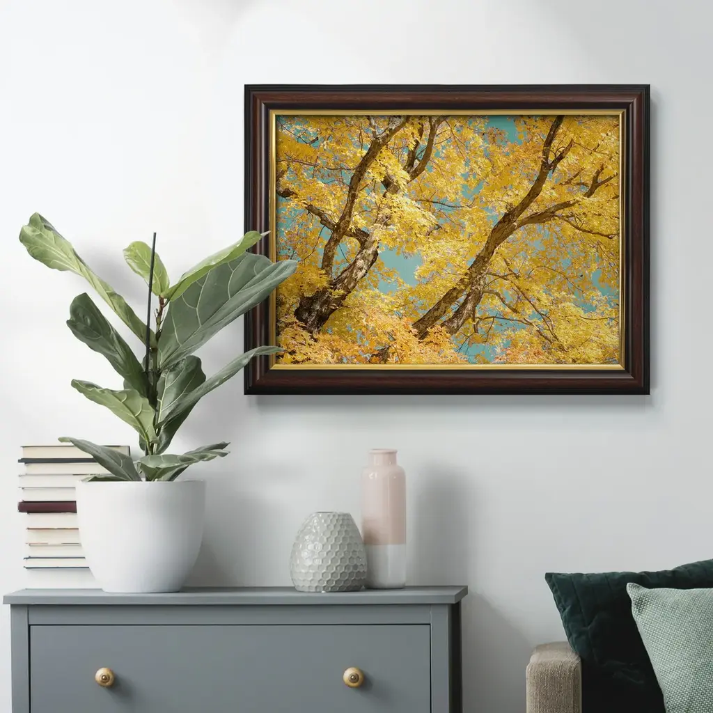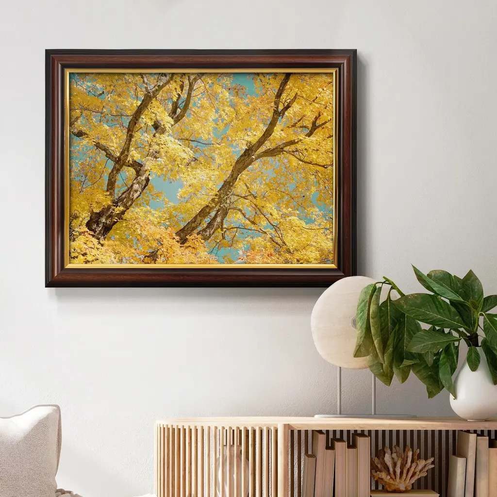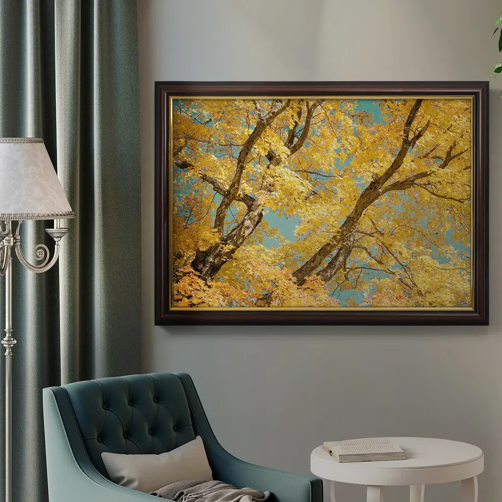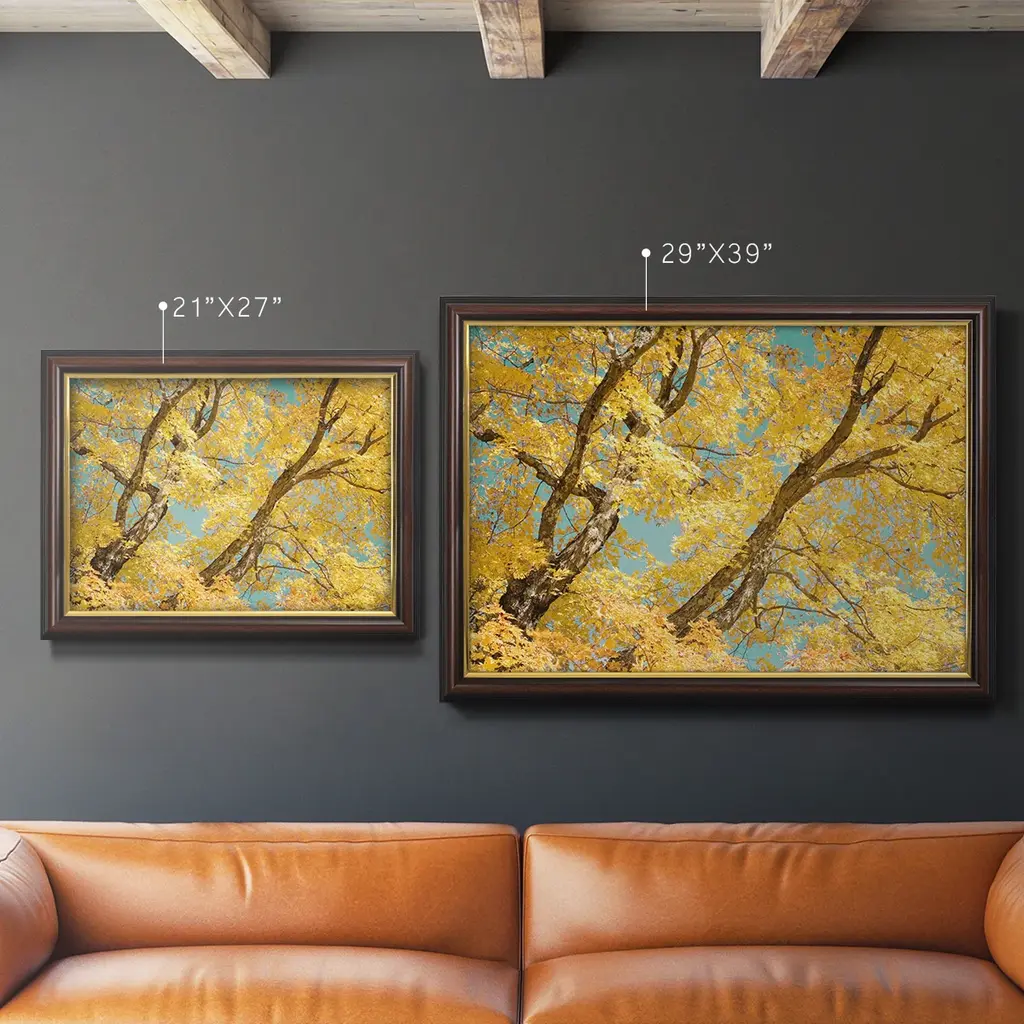 Autumn Tapestry V Premium Framed Canvas- Ready to Hang A Premium Framed Canvas created to last. Framed in distressed wood and available in an array of sizes and colors Featuring a beveled a solid wood stretcher bar, each piece comes ready to hand 3 SIZES AVAILABLE 16''X20'' - Overall Size 18'X27'' - Overall Size 24''x36'' - Overall Size Each piece is made to order. Each piece comes with hanging hardware. Made in the USA Ready to Hang Giclee Paper Print Acrylic Glass Beveled Matt Board