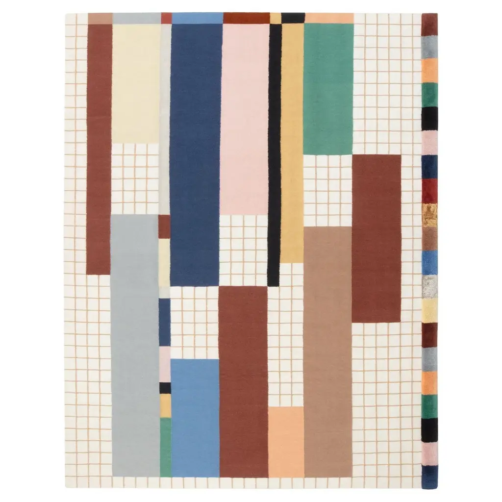 From a small collection of rugs inspired by destinations, Roger Selden's Cape Cod Rug is a delightfully vibrant style for contemporary spaces. Knotted entirely by hand, the rug is made with wool. Limited edition, only 36 pieces available. 180 by 255 centimeters. Handmade by craftsmen in Yum technique. Flip Flop Collection.