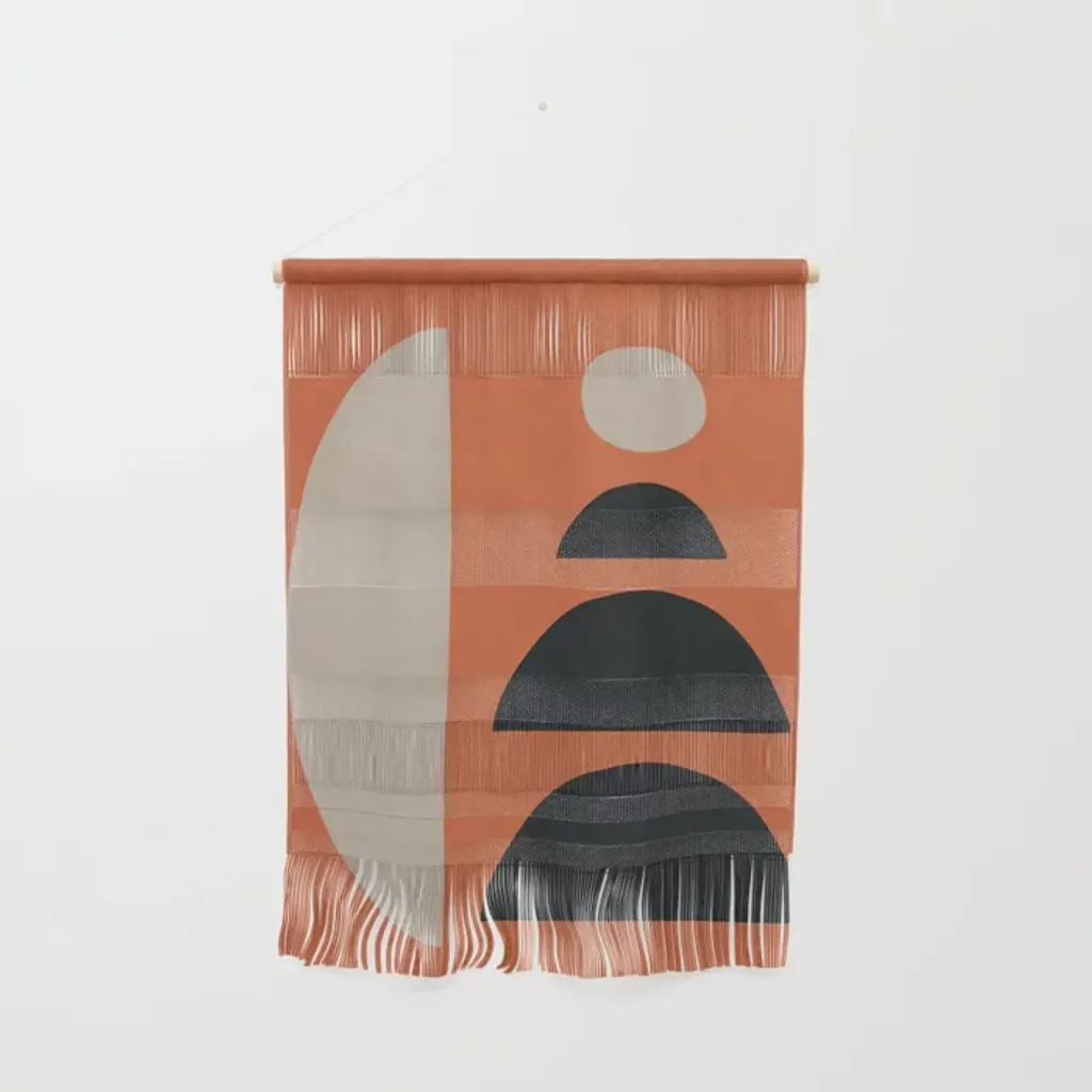 Centro Sheep Wool Handwoven Tapestry, Aged Bronze Wall Mount, Ivory & Terracota