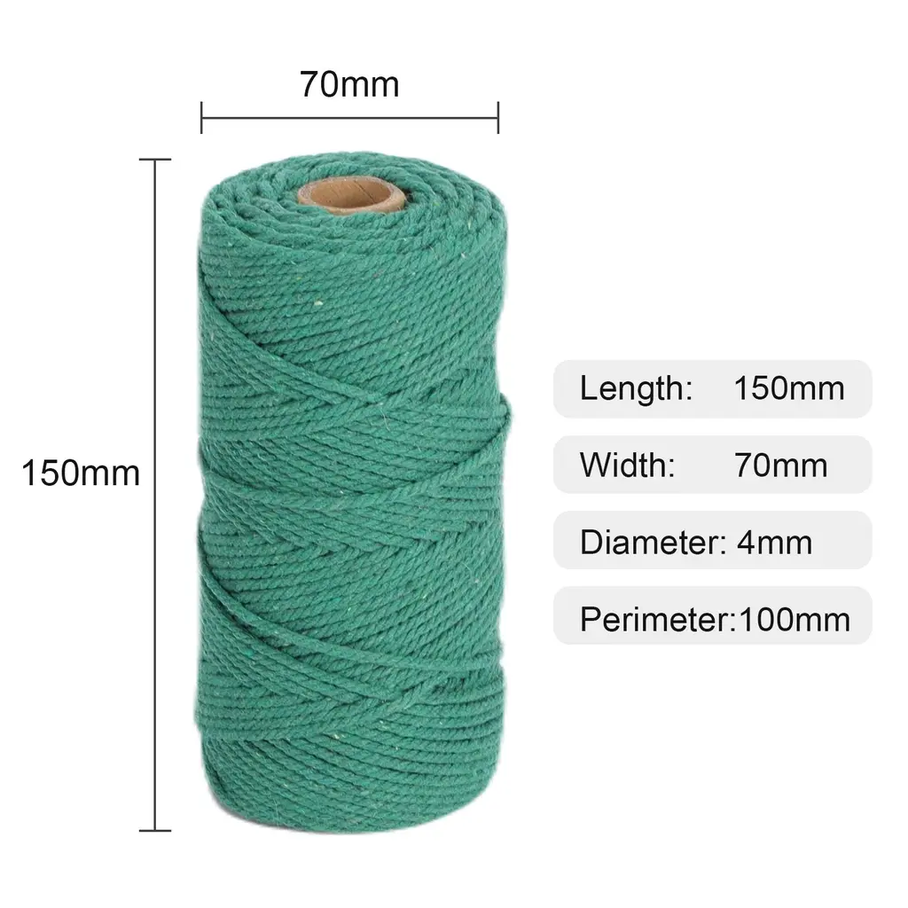 Double Color Cotton Cord Tapestry Material Wrapping String Rope Braided Cotton Rope Hand Knit Yarn Knitting Cord Rope - 100 Meter - Green