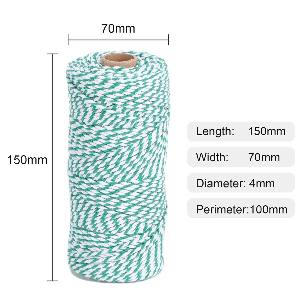 Double Color Cotton Cord Tapestry Material Wrapping String Rope Braided Cotton Rope Hand Knit Yarn Knitting Cord Rope - 100 Meter - Green&white